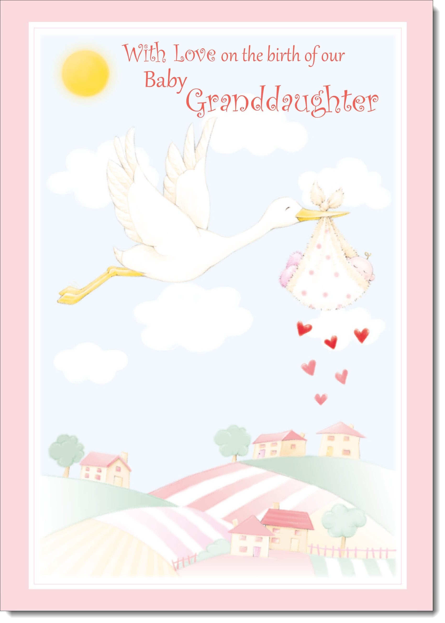 On The Birth Of Our Granddaughter New Baby Girl Congratulations Card Stork