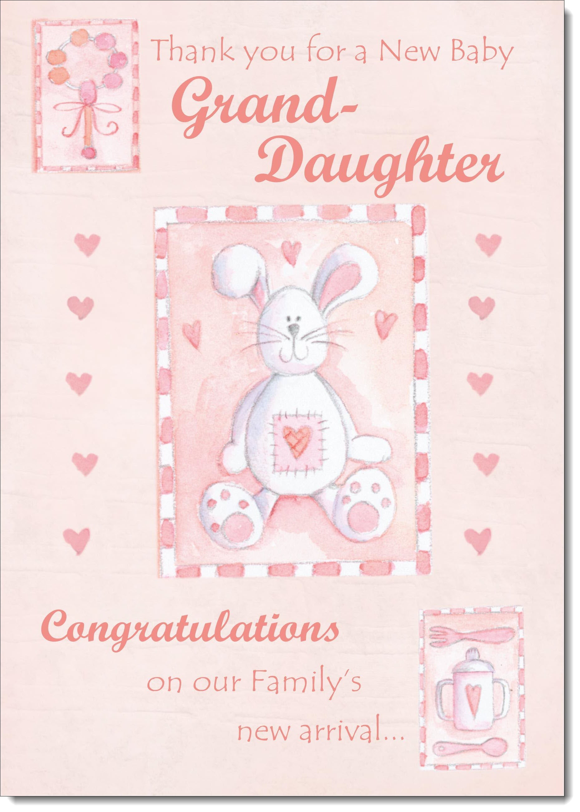 On The Birth Of Our Granddaughter New Baby Girl Congratulations Card Toy Rabbit