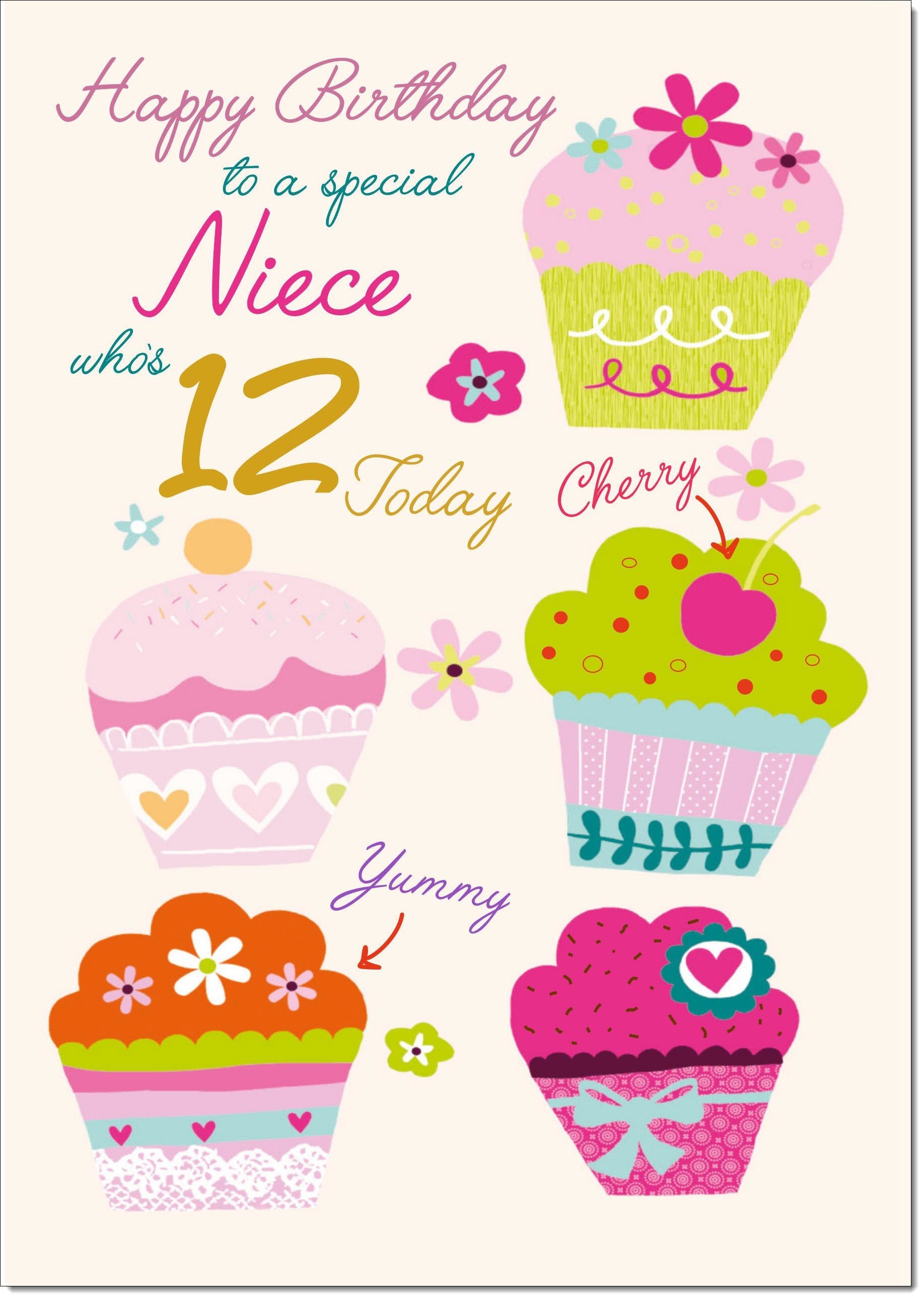Niece 12th Birthday Card Age 12 Bright Cupcakes