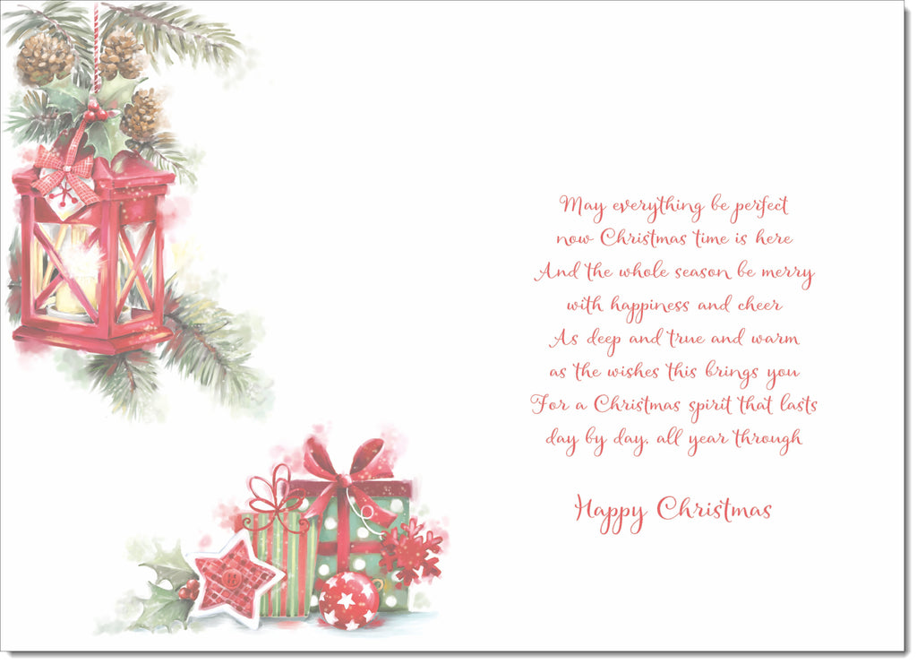 Niece Christmas Card Red Lantern & Christmas Presents