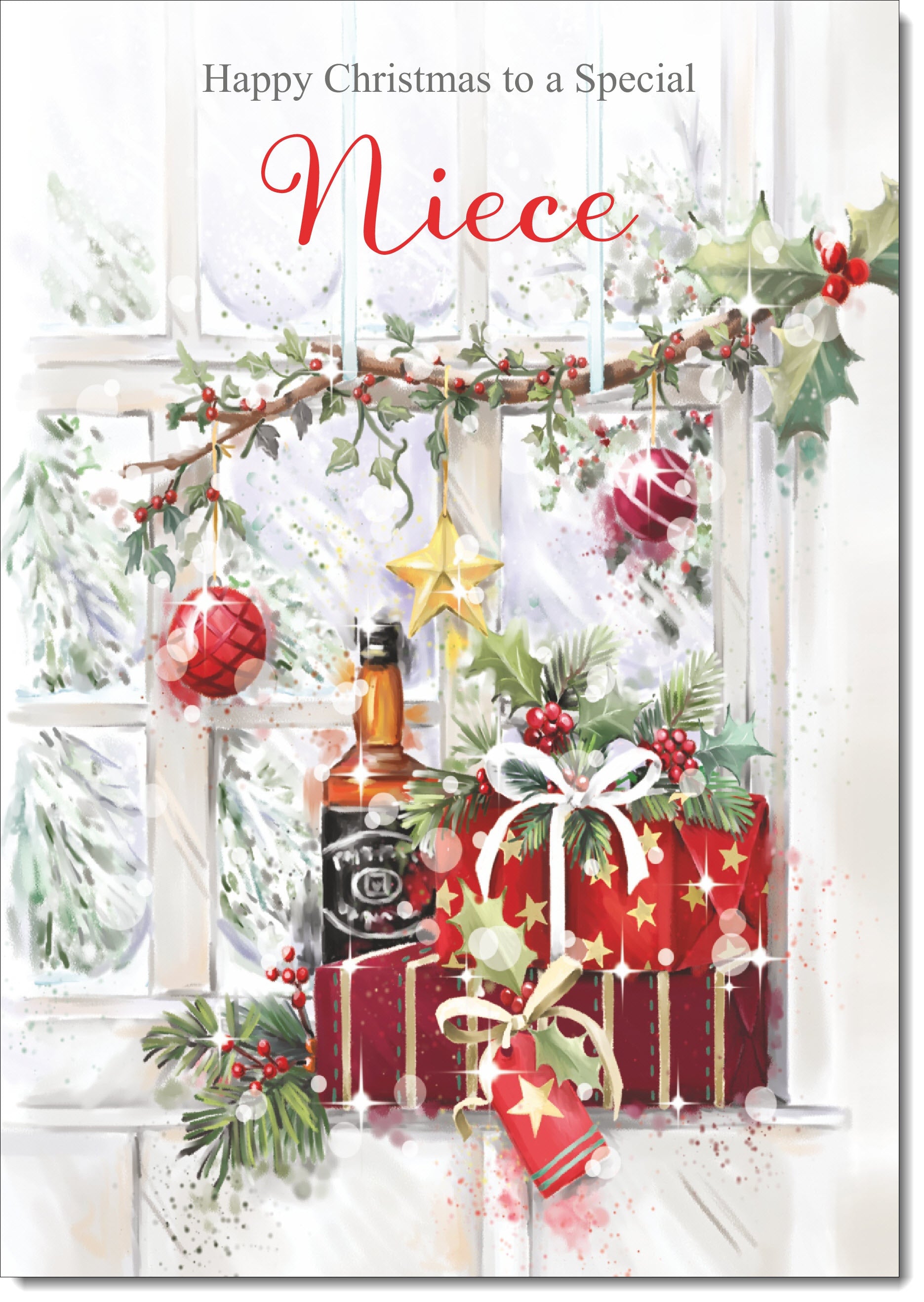 Niece Christmas Card Whisky and Presents