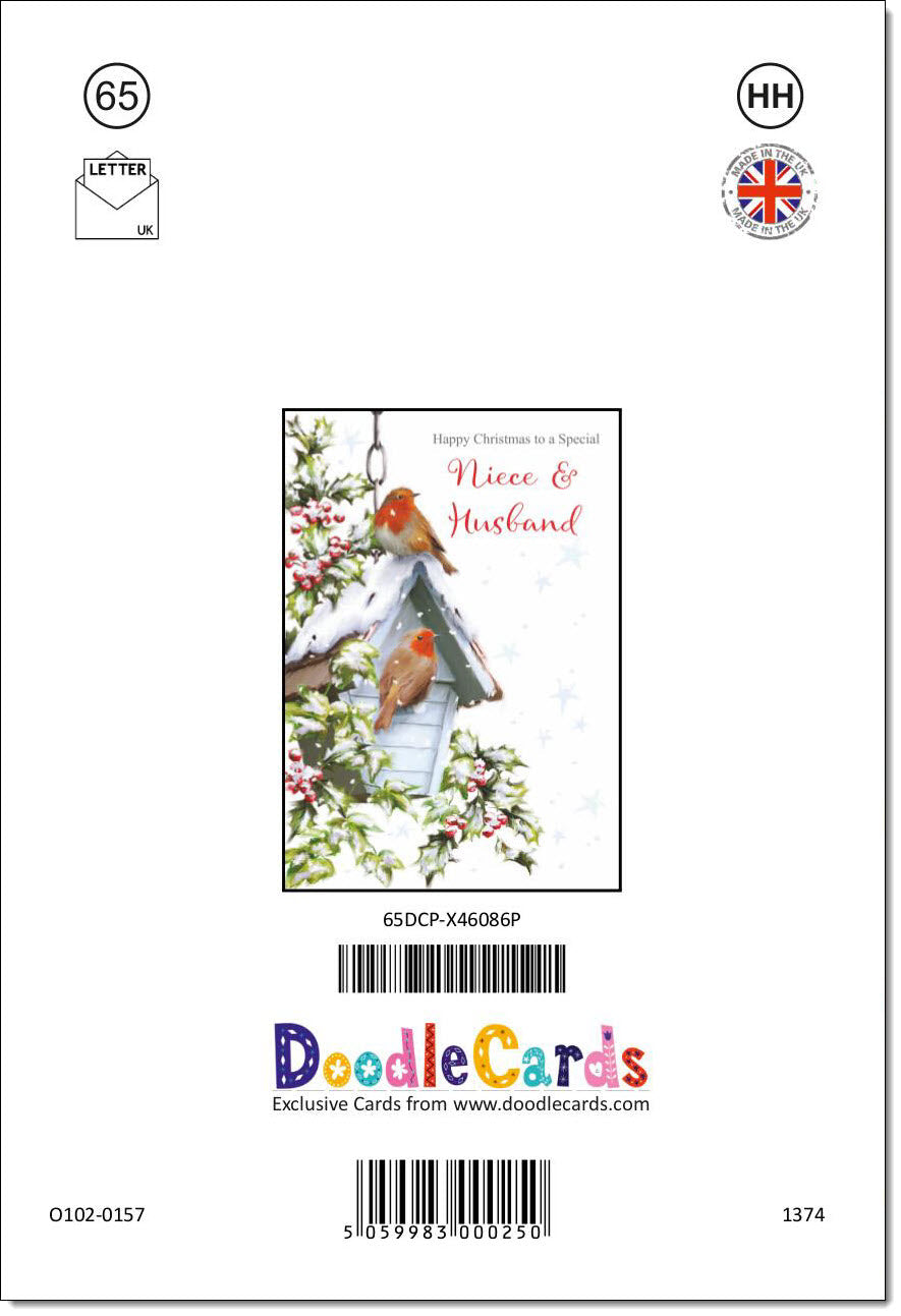 Niece & Husband Christmas Card Two Robins in Snow