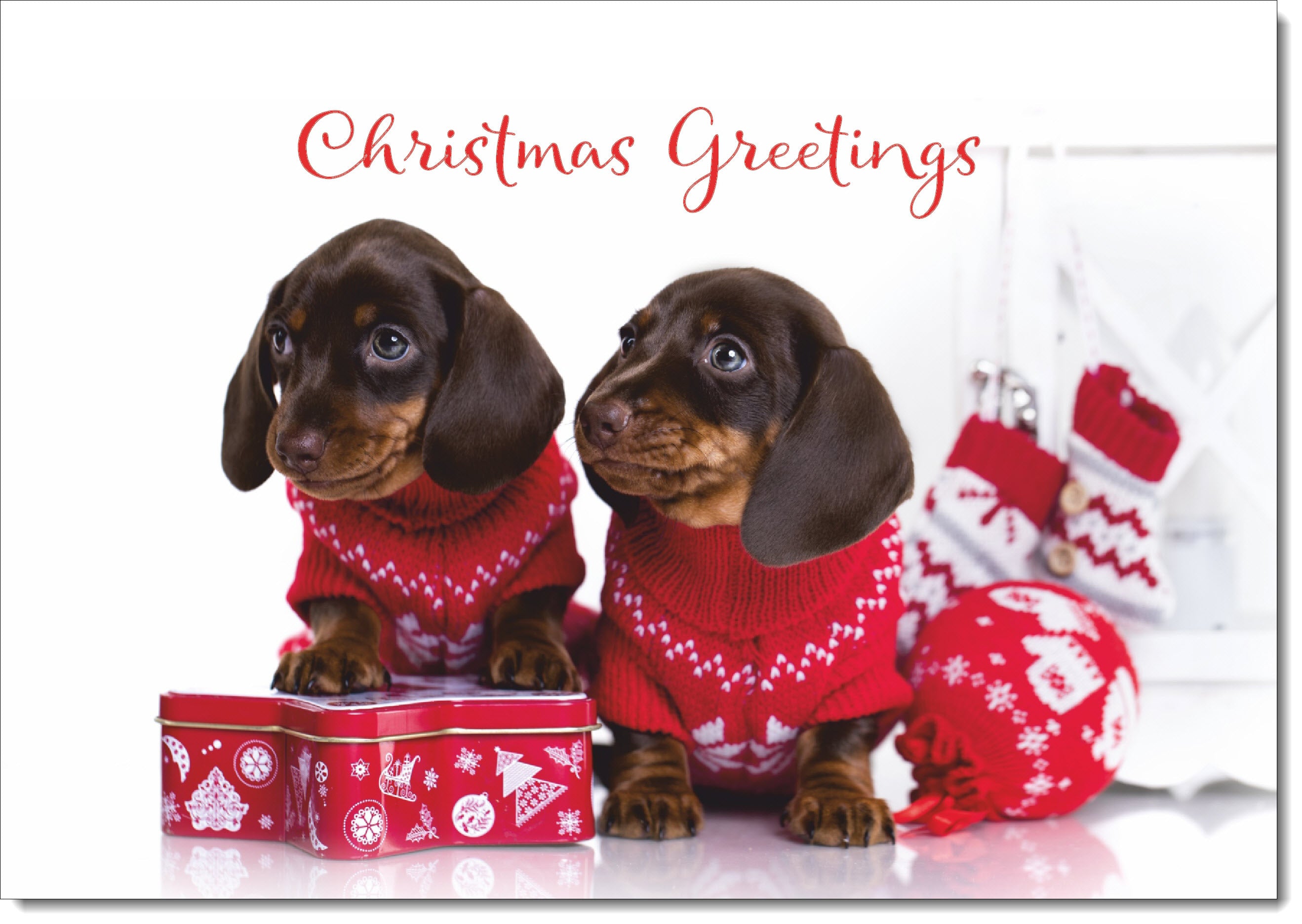 Christmas Greetings Christmas Card Dachshund Puppies in Christmas Jumpers