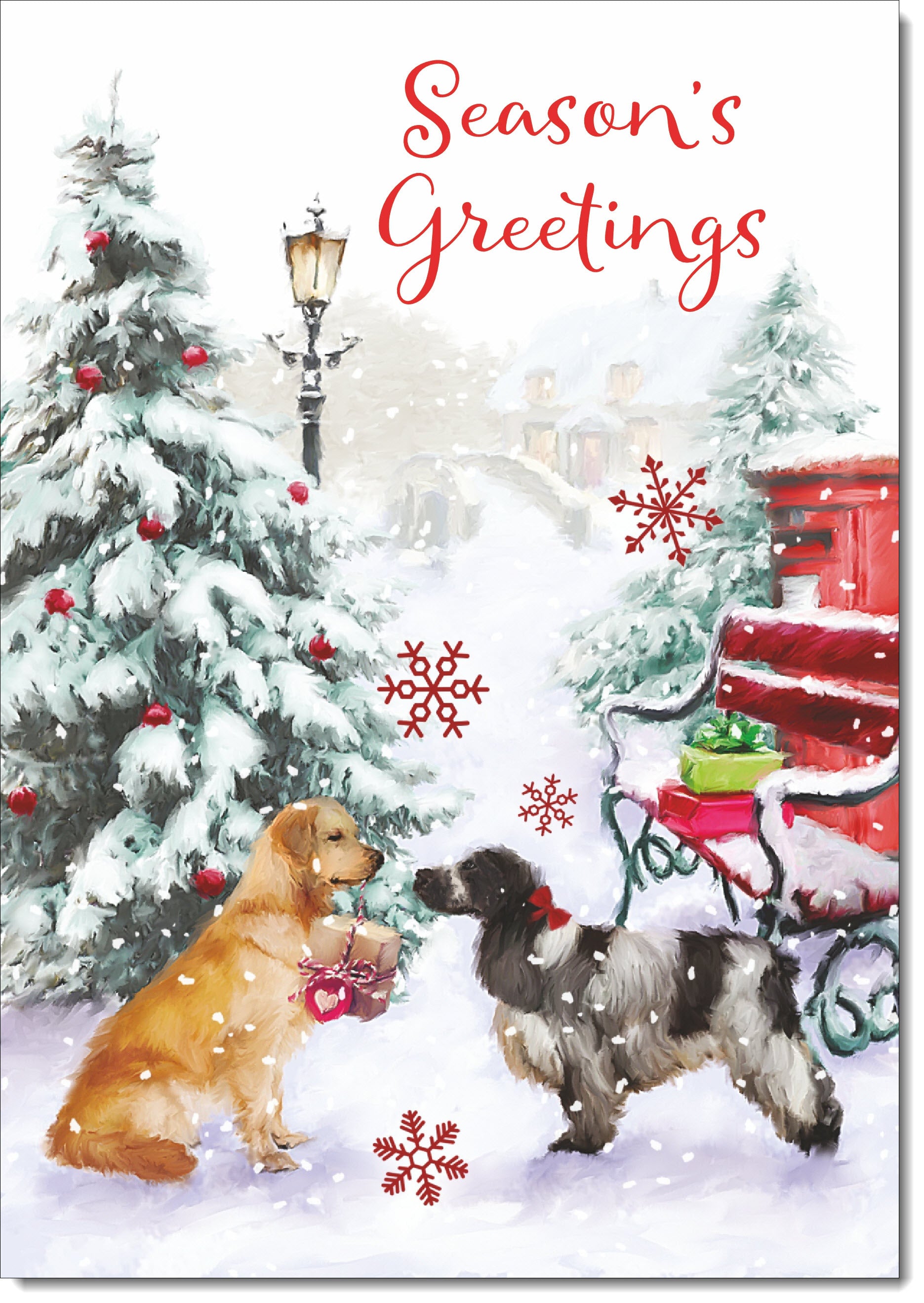 Seasons Greetings Christmas Card Two Dogs in Snow