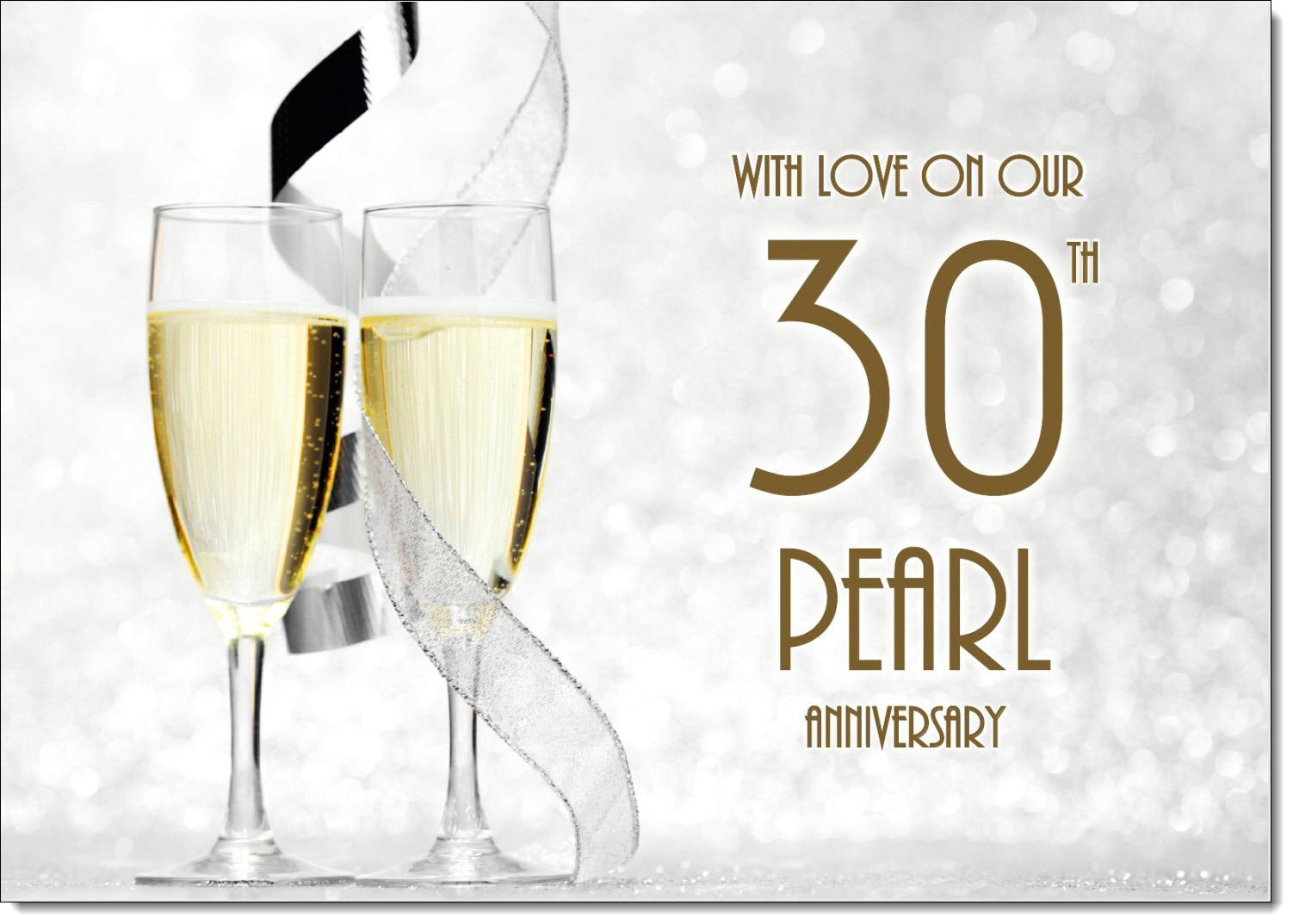 Our Pearl 30th Wedding Anniversary Card Champagne Glasses