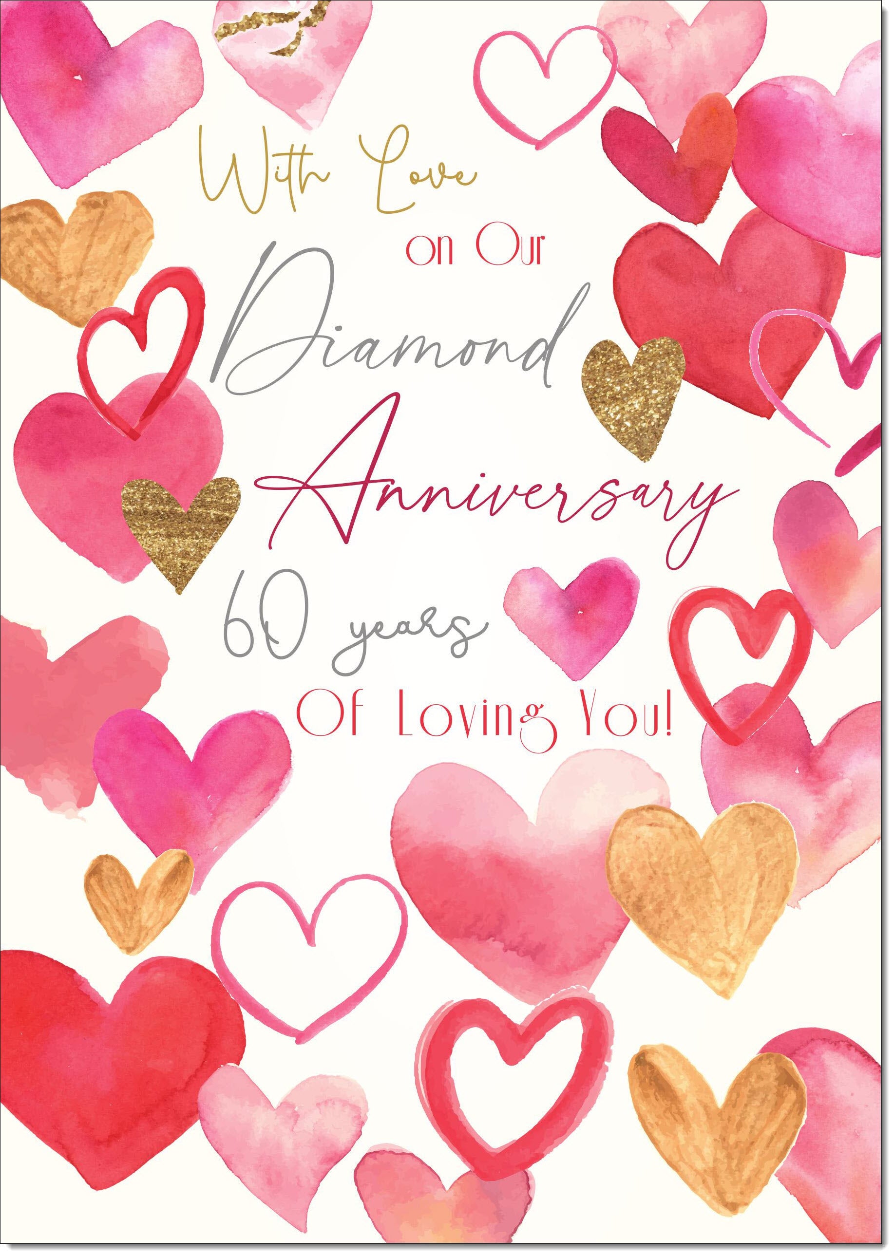 Our Diamond 60th Wedding Anniversary Card Love Hearts