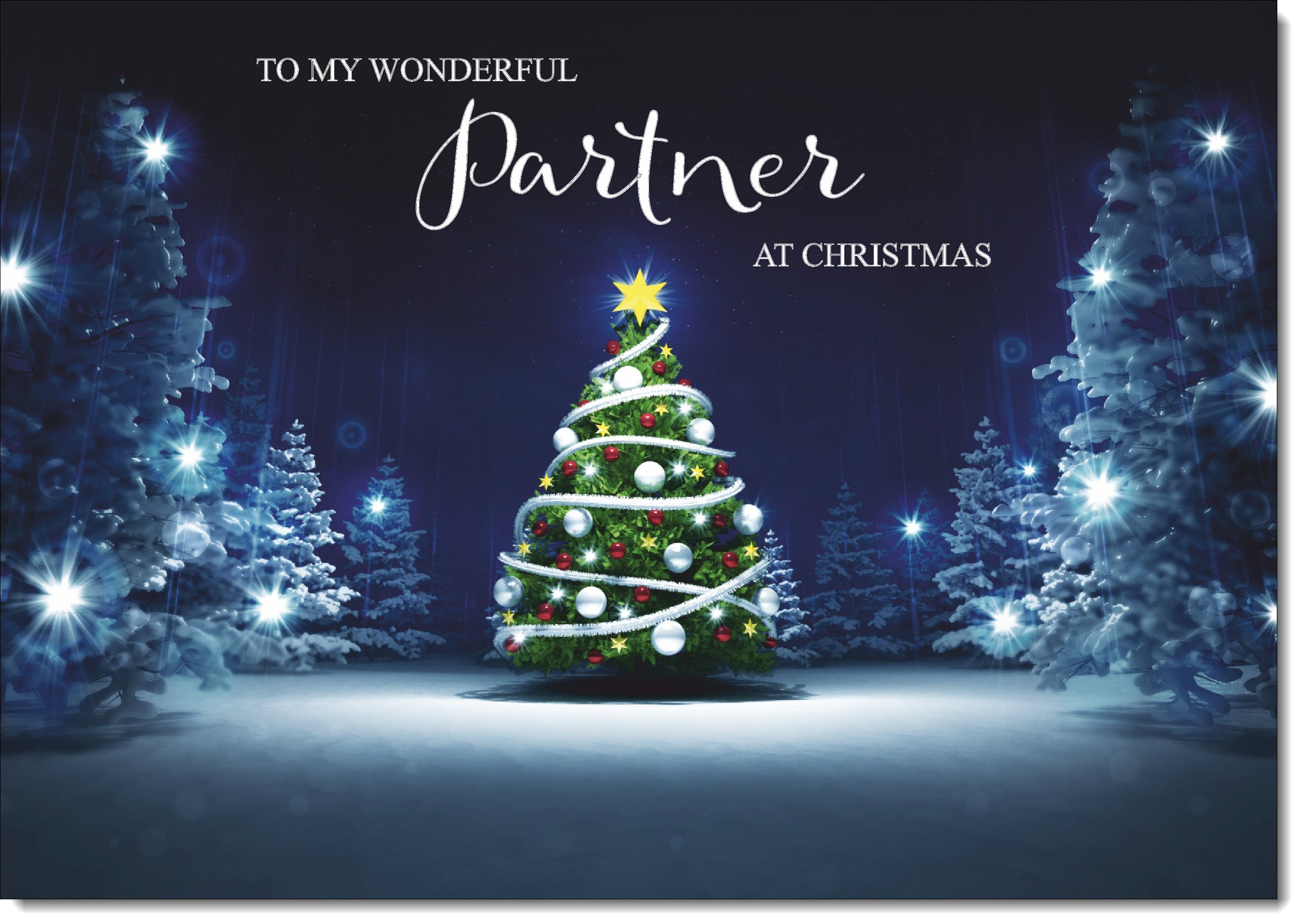 Partner Christmas Card Christmas Tree Lights in Dark Sky