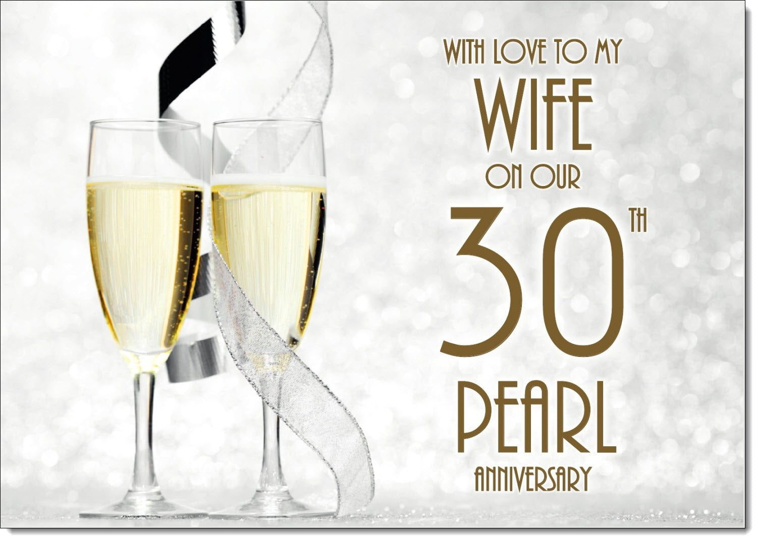Wife Pearl 30th Wedding Anniversary Card Champagne Glasses