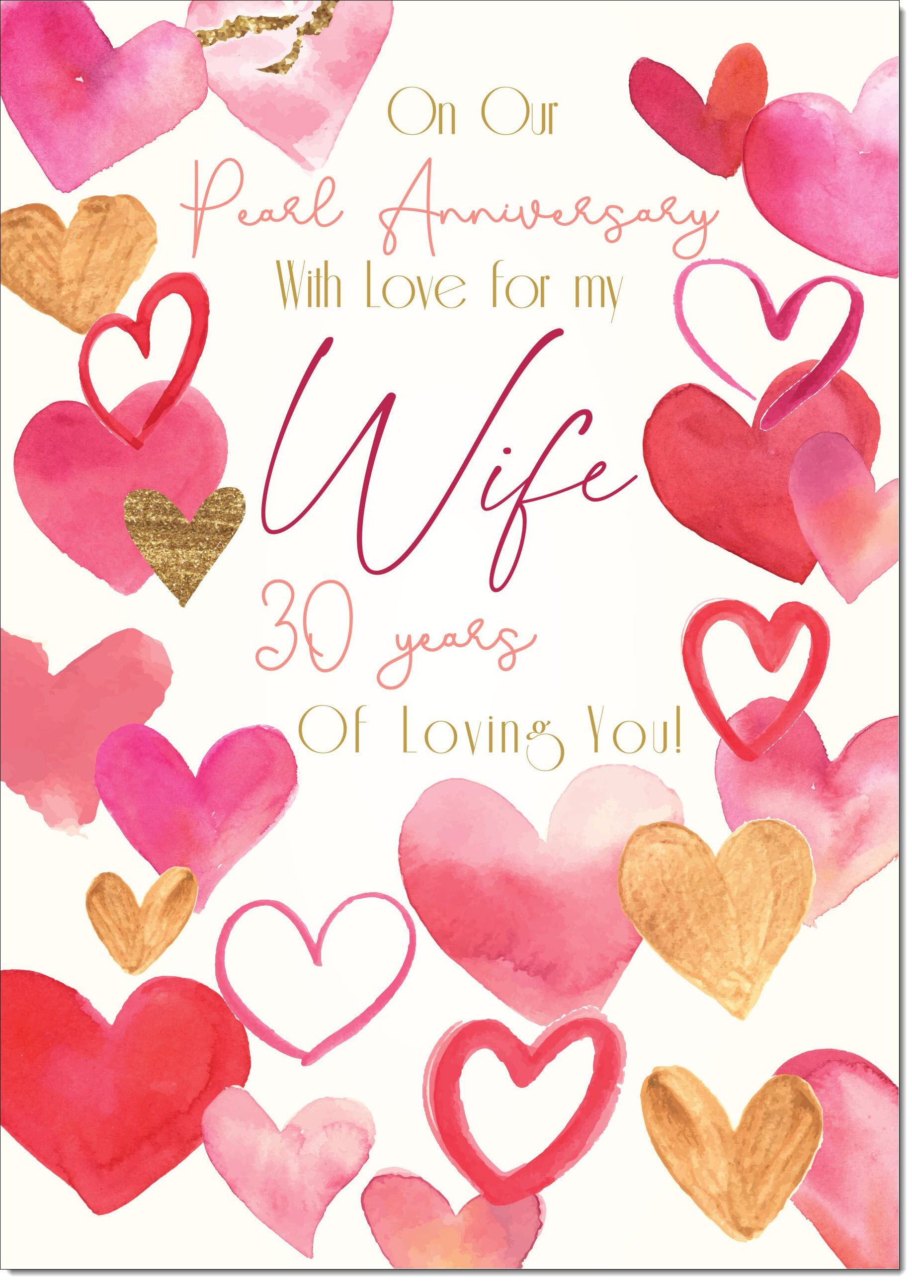 Wife Pearl 30th Wedding Anniversary Card Love Hearts