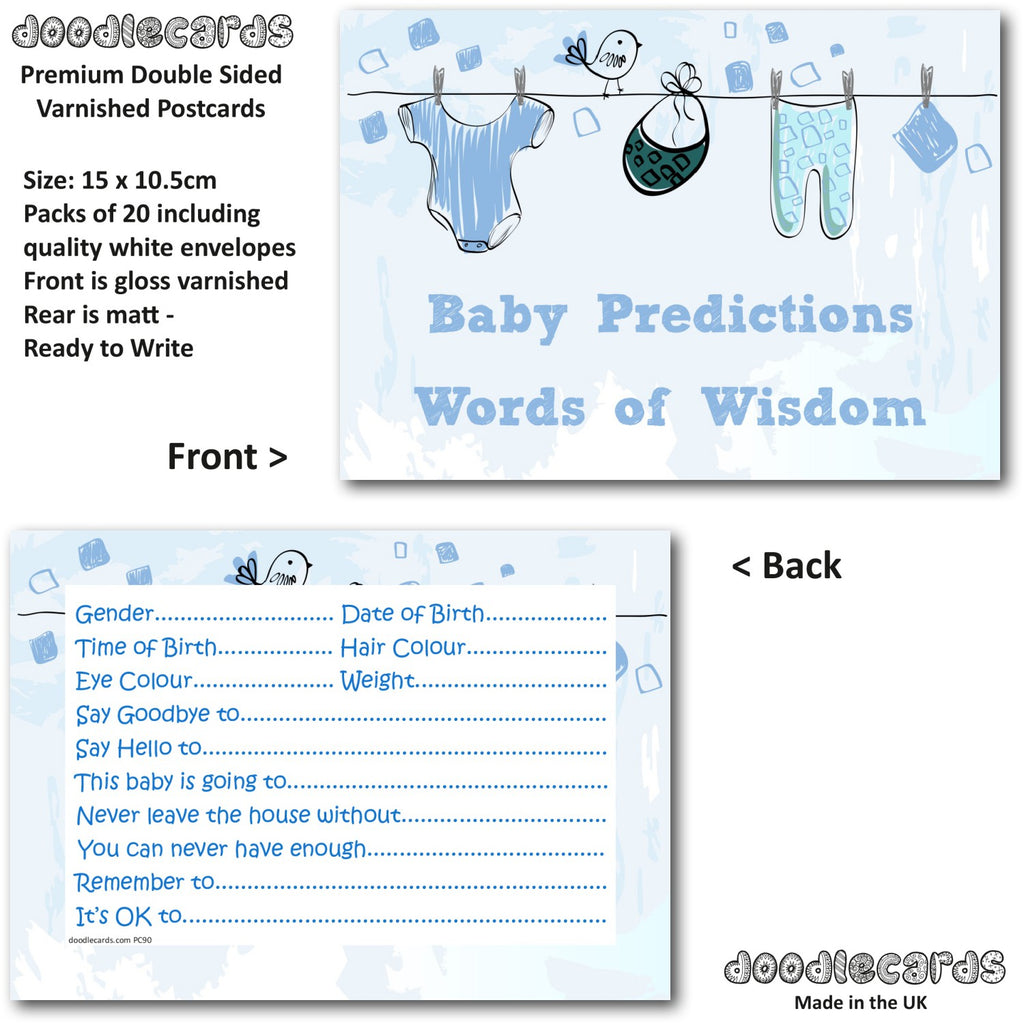 Baby Shower Prediction Game Cards Clothes Blue Boys Pack of 20 Cards & Envelopes