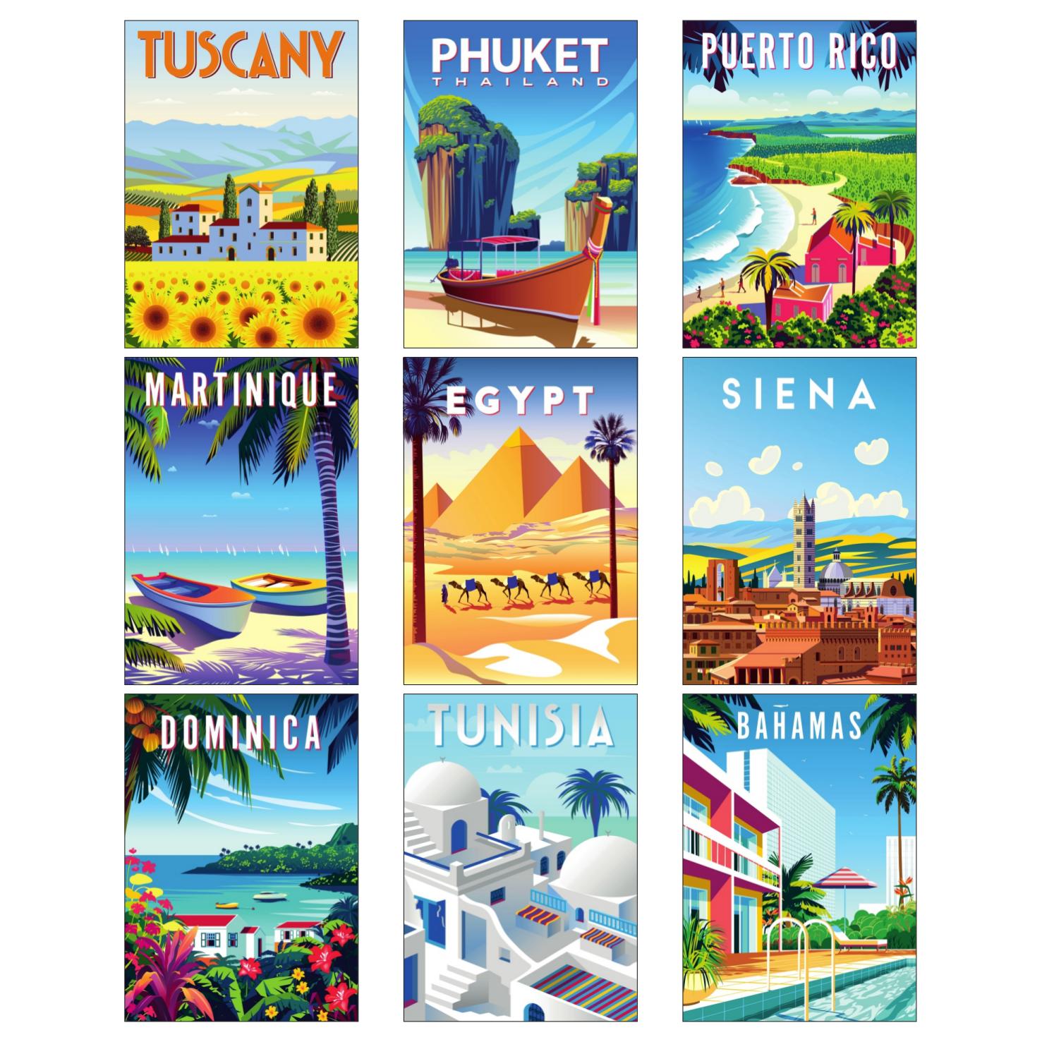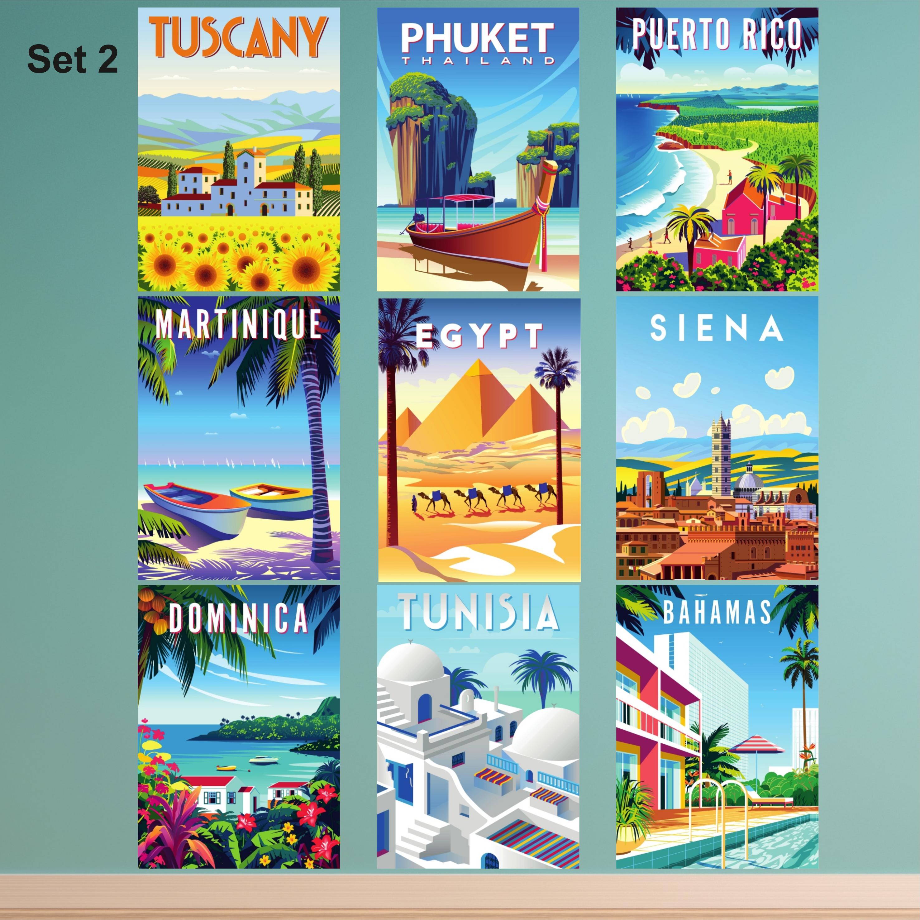 Retro Travel Set 2 out of 5 Matching Sets Unframed Quality Prints A4 or A3 Size (A4 210 x 297mm, A3 297 x 420mm)(A4 8.3 x 11.7", A3 11.7 x 16.5") Printed in the UK on 100% Recyclable Thick 350gsm Luxury Matt Board Supplied UNFRAMED but look great as they are. Delivered flat - not rolled. Ready to Frame - Easy to Purchase A4 or A3 Frames online. No cutting required.