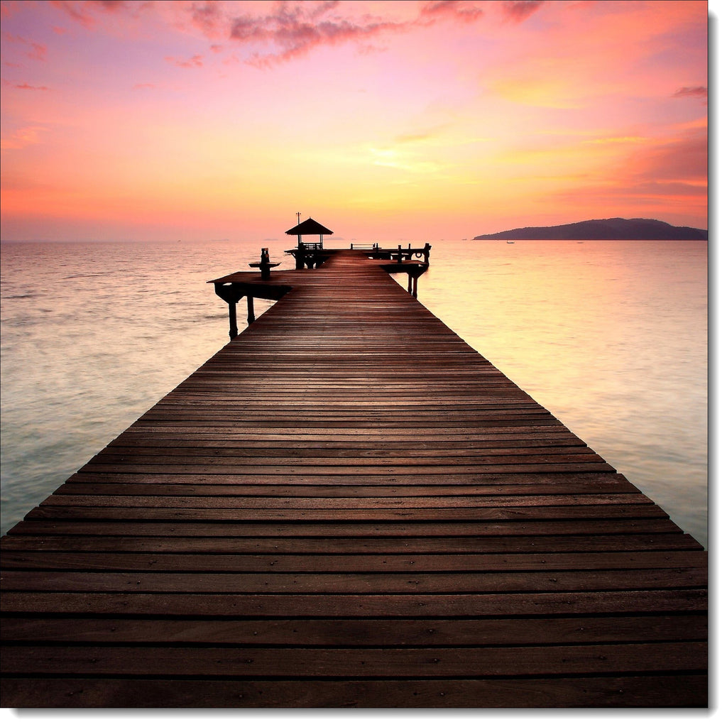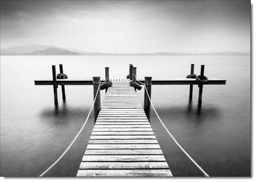 Coastal Birthday Card Wooden Pier and Rowing Boat