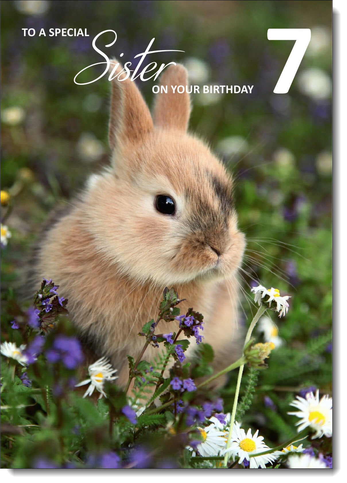 Sister 7th Birthday Card Age 7 Bunny Rabbit