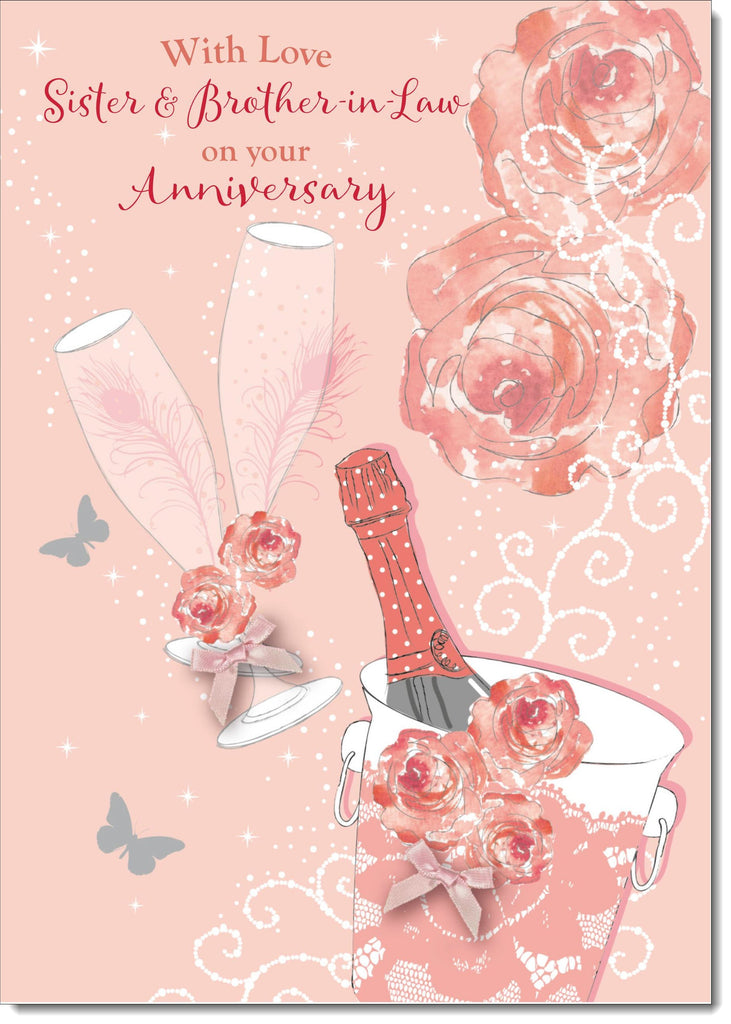 Sister & Brother-in-Law Wedding Anniversary Card Champagne Bottle and Glasses