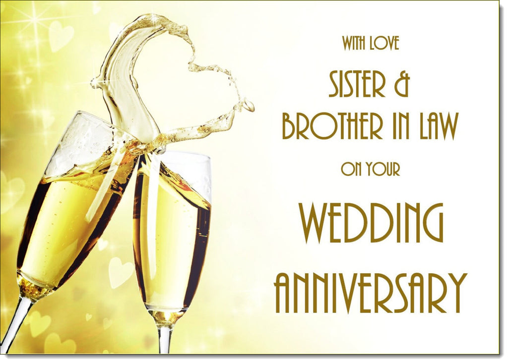 Sister & Brother-in-Law Wedding Anniversary Card Love Heart Champagne Glasses