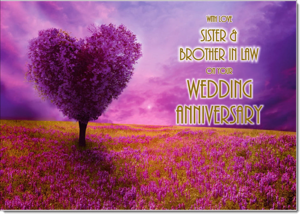 Sister & Brother-in-Law Wedding Anniversary Card Purple Love Heart Tree