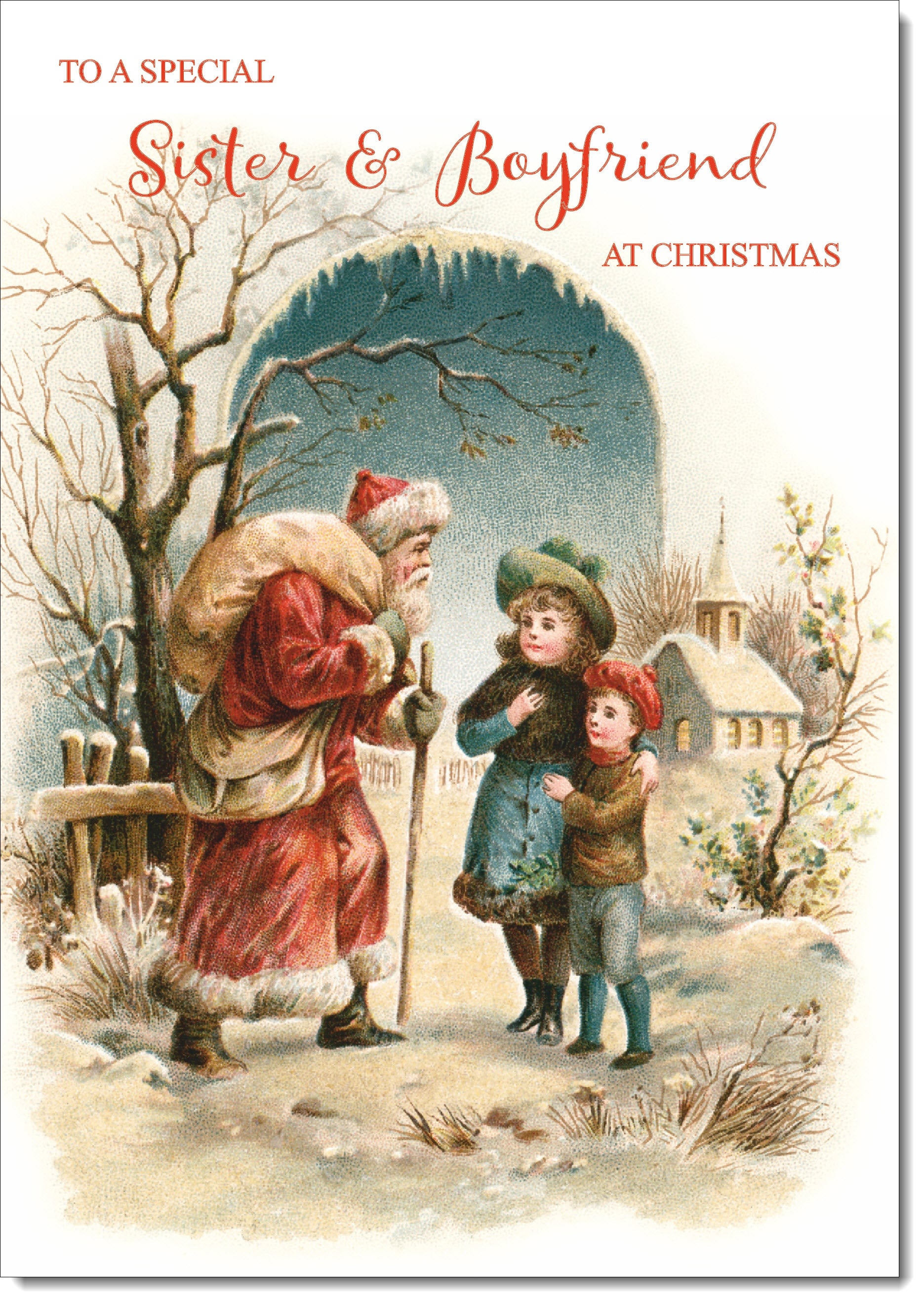 Sister & Boyfriend Christmas Card Victorian Santa Painting