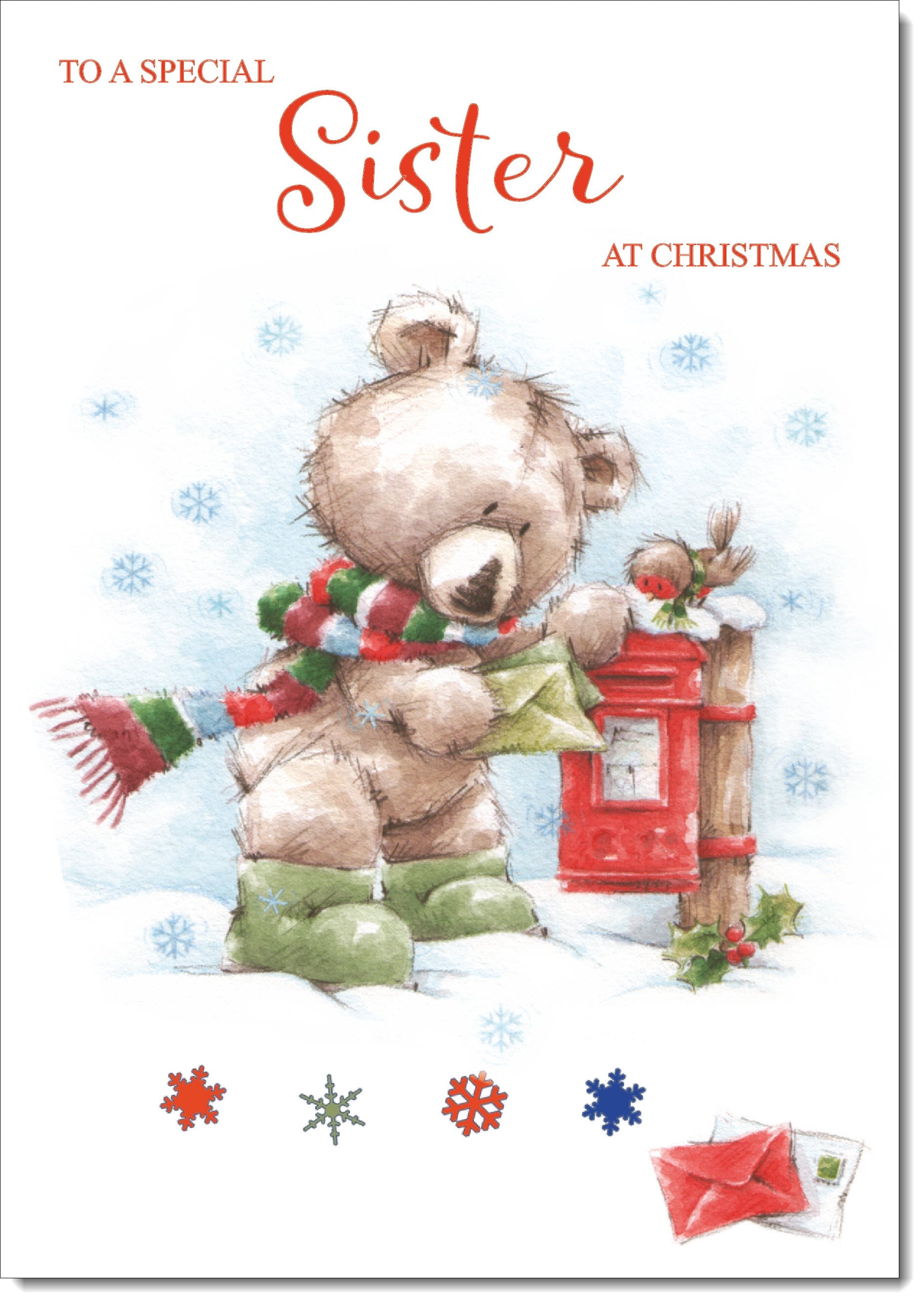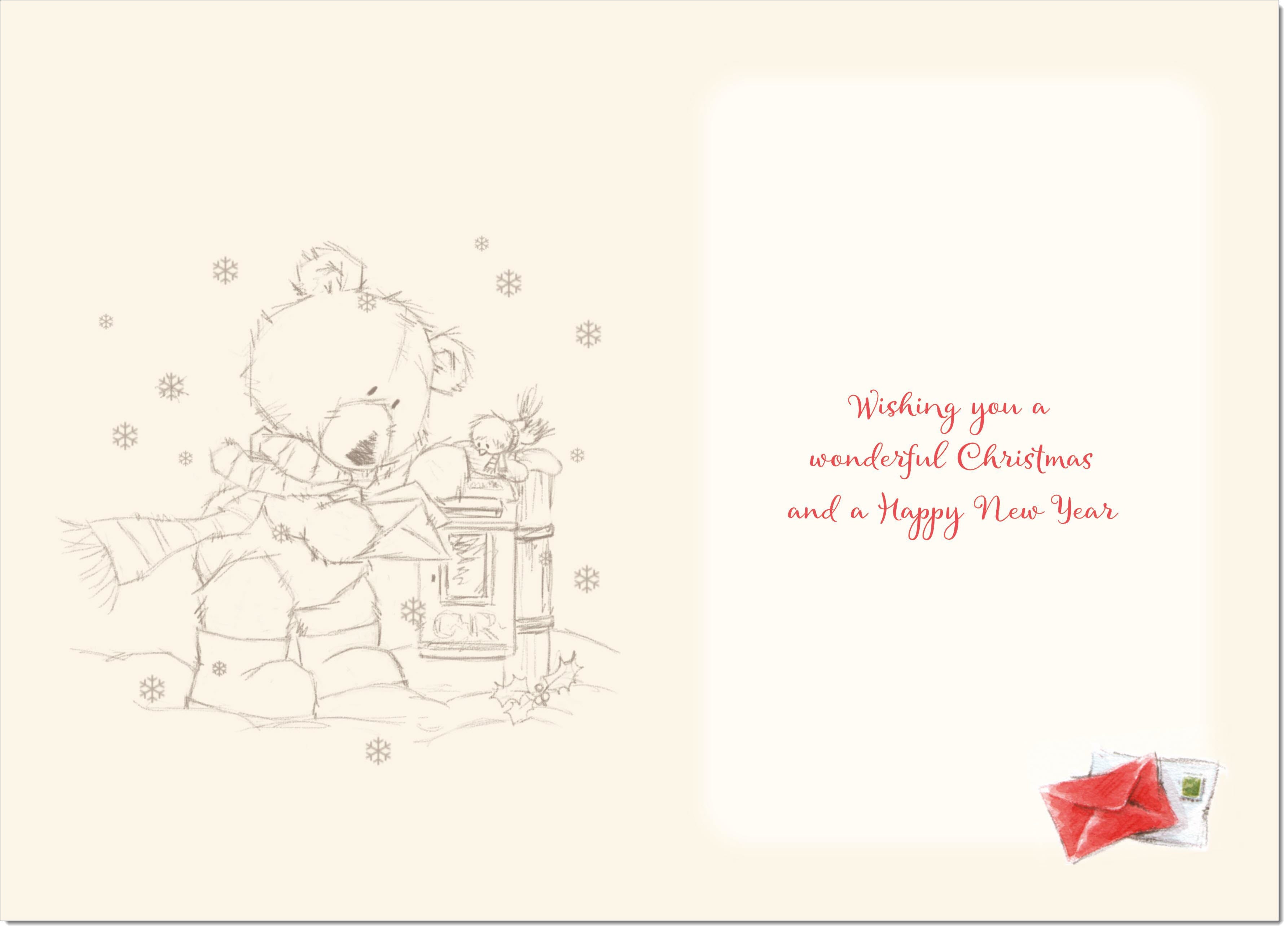 Sister Christmas Card Cute Bear at Post Box