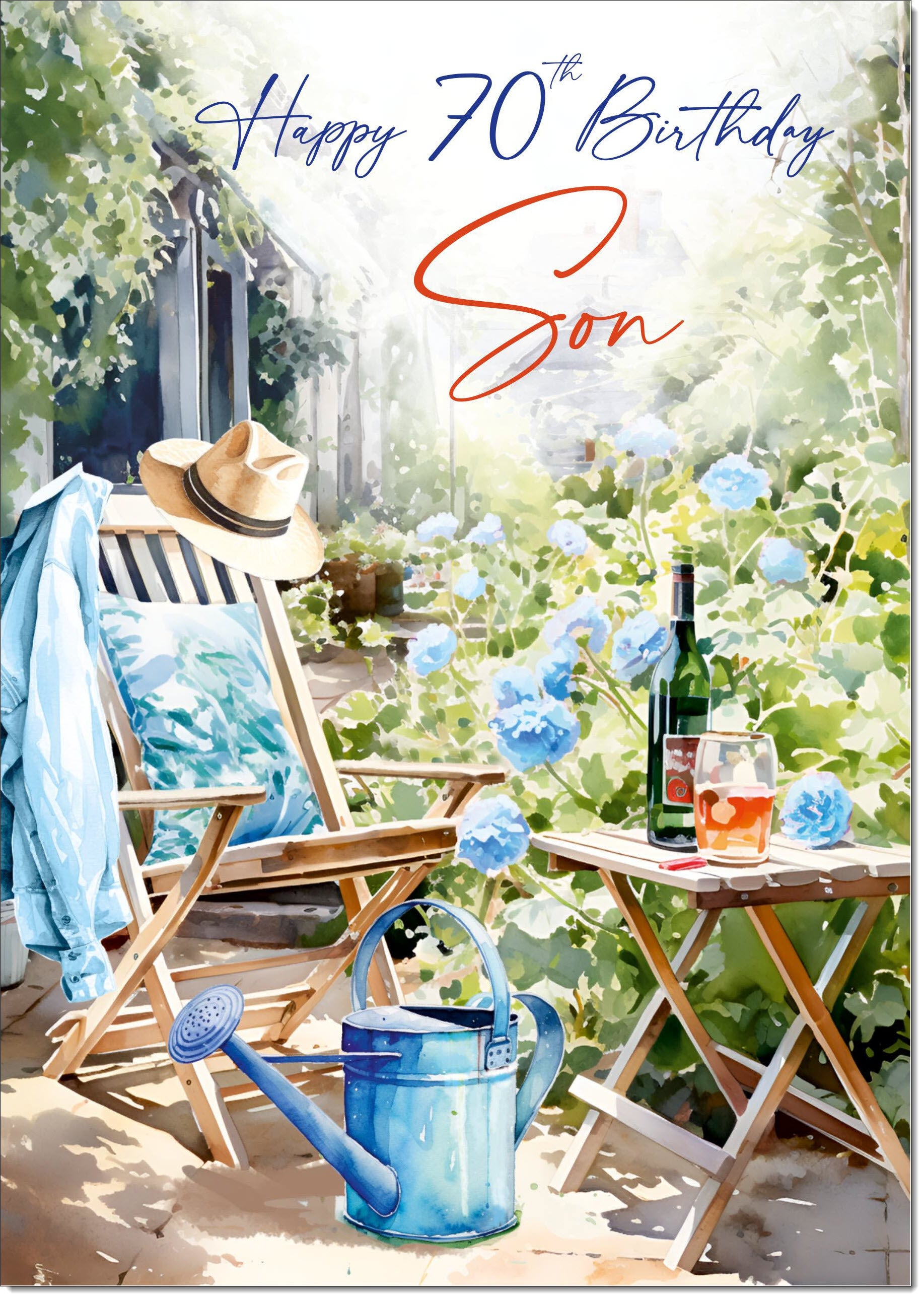 Son 70th Birthday Card Age 70 Relax in the Garden