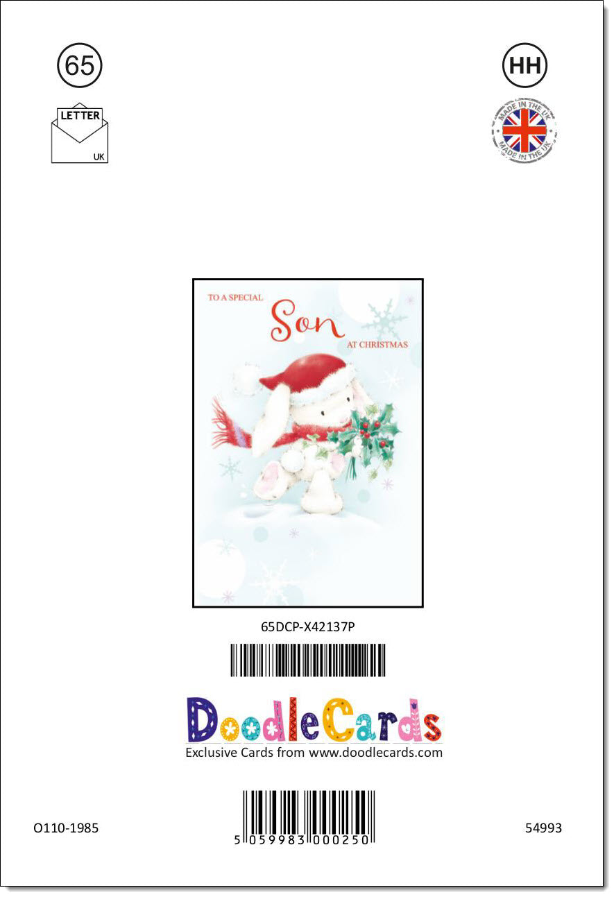 Son Christmas Card Cute Rabbit with Holly