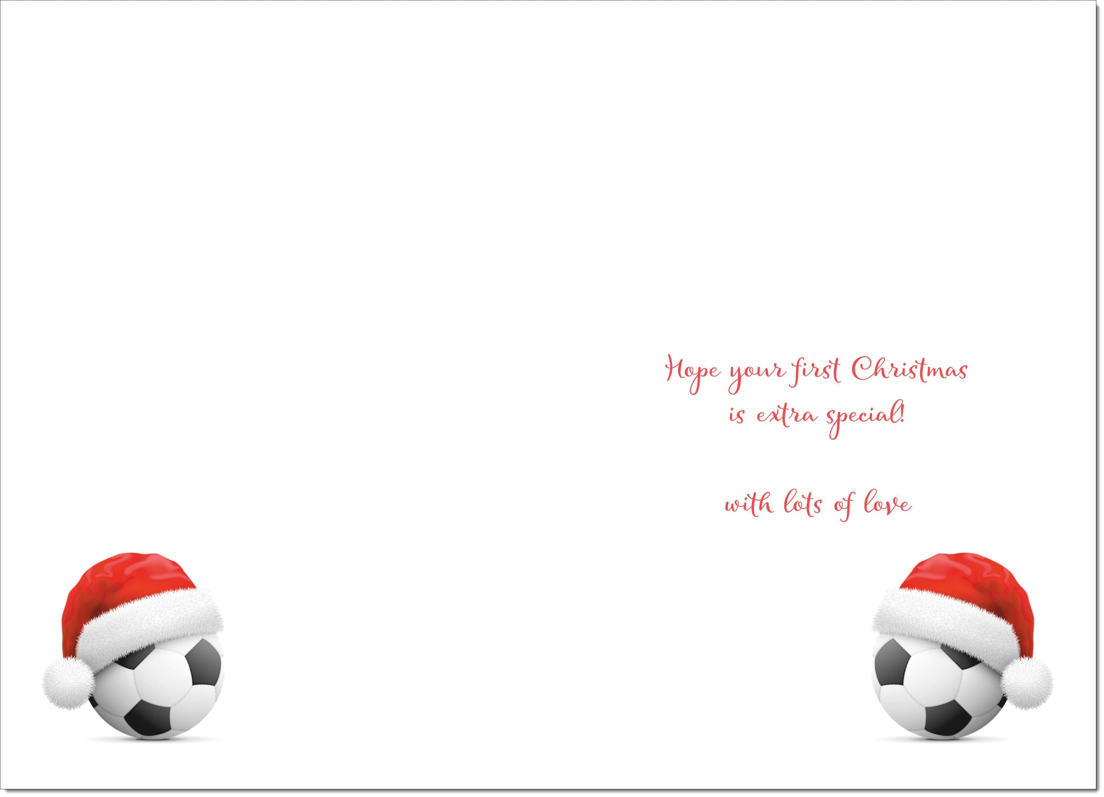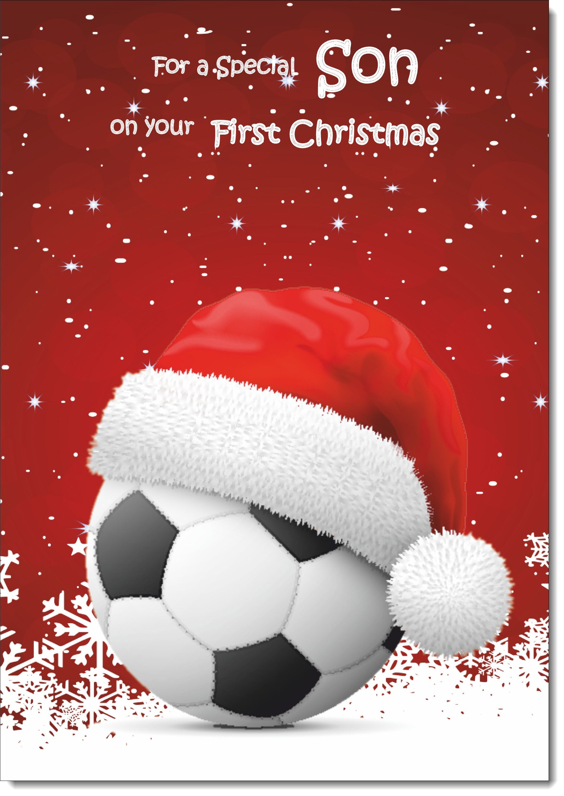Sons 1st Christmas Card Santa Hat Football with Red Sky
