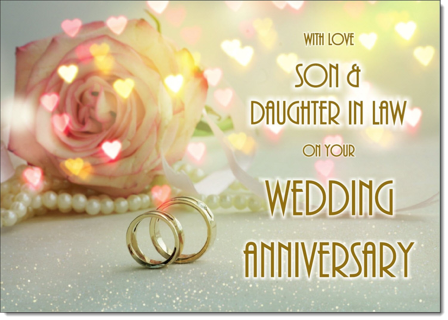 Son & Daughter-in-Law Wedding Anniversary Card Sparkling Wedding Rings