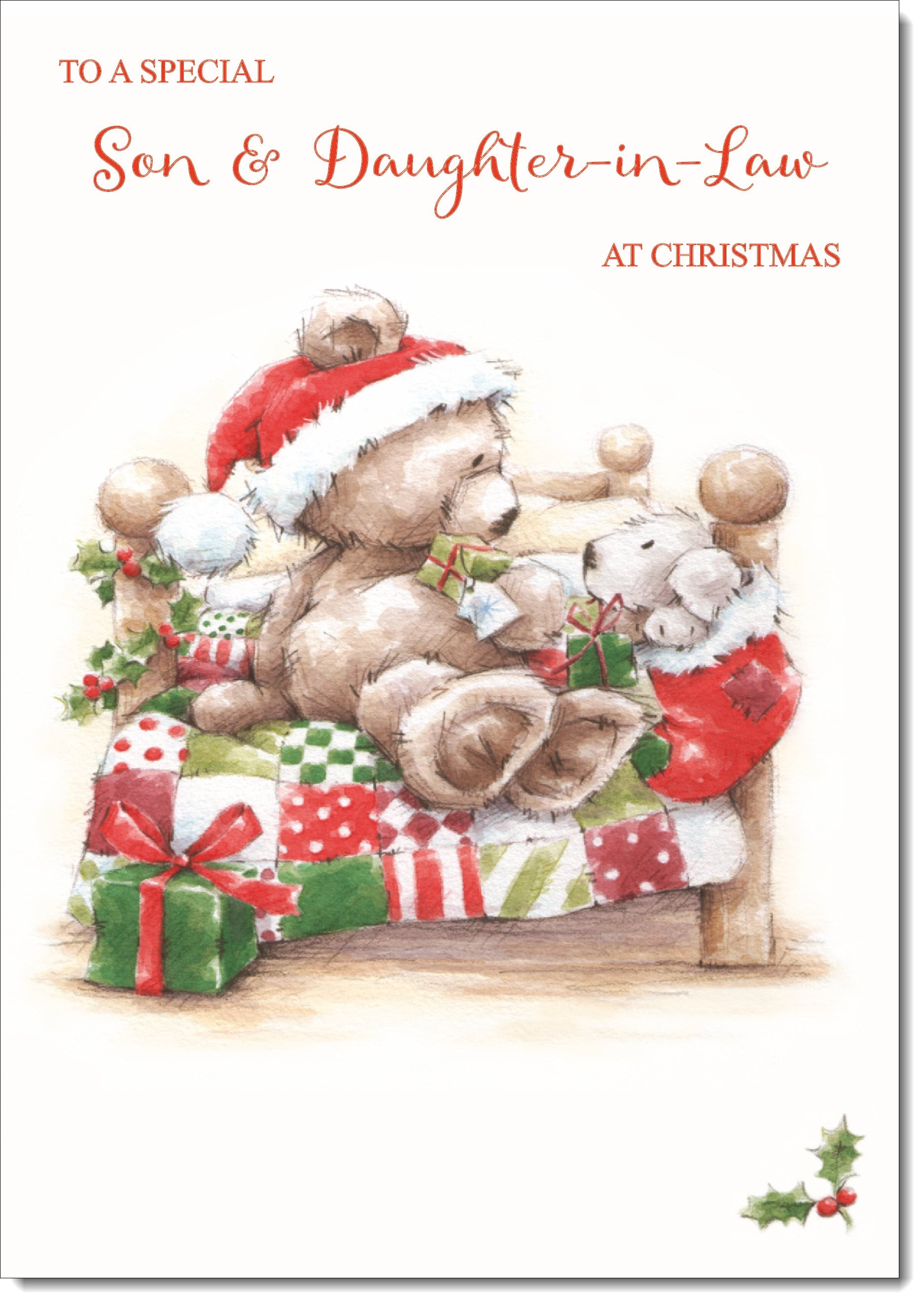 Son & Daughter-in-Law Christmas Card Cute Bear on Bed