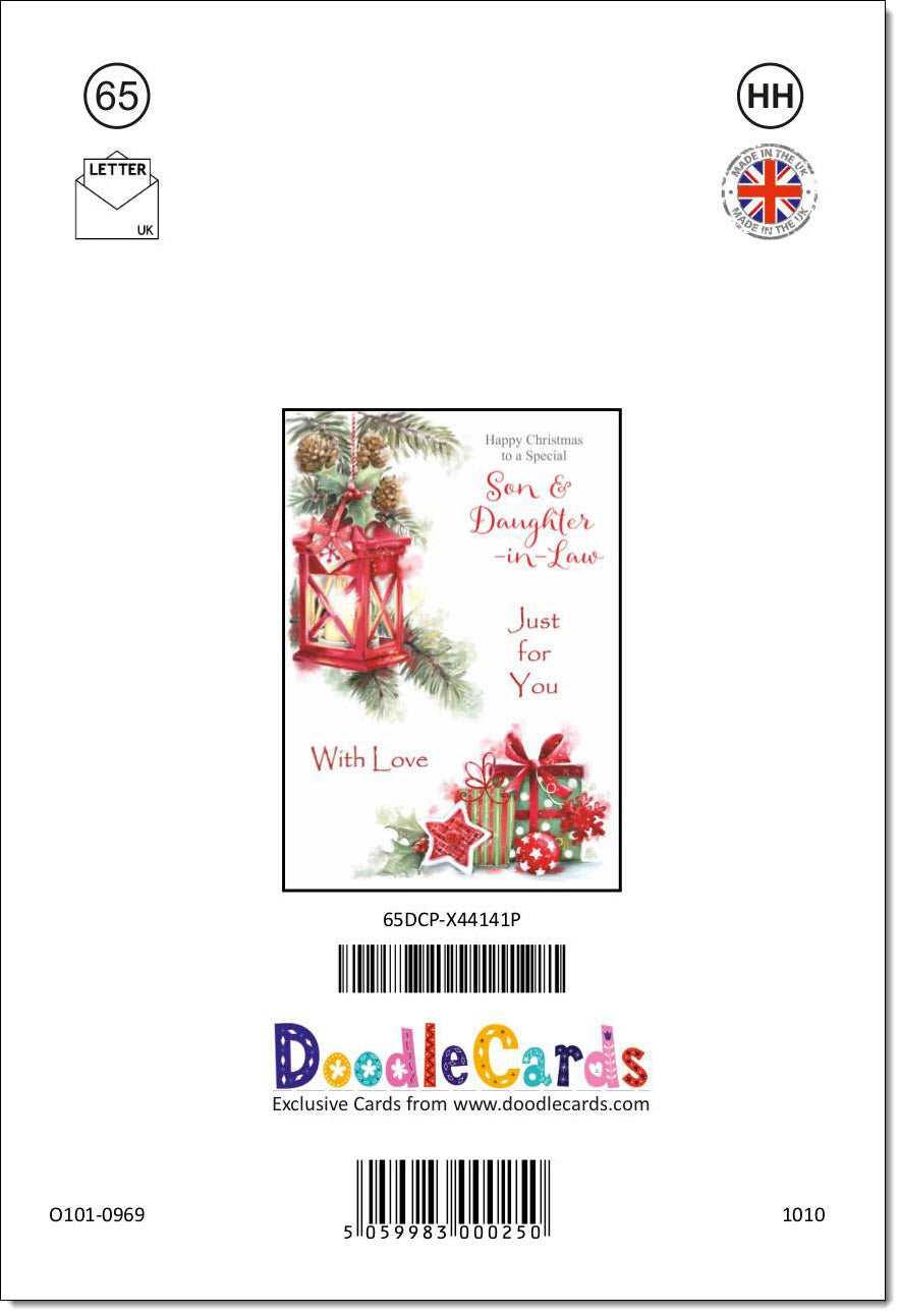 Son & Daughter-in-Law Christmas Card Red Lantern & Christmas Presents