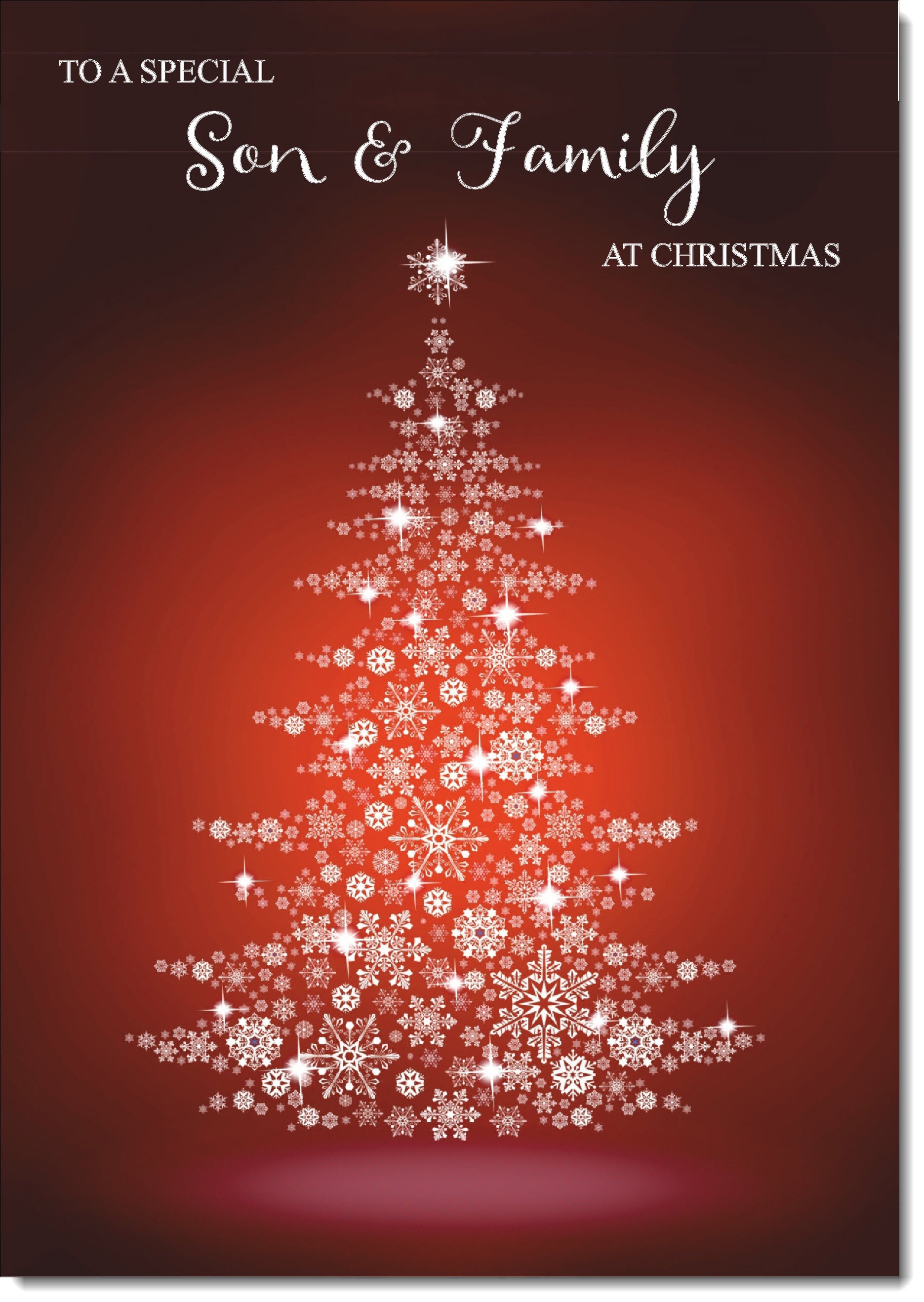 Son & Family Christmas Card Red Snowflake Christmas Tree
