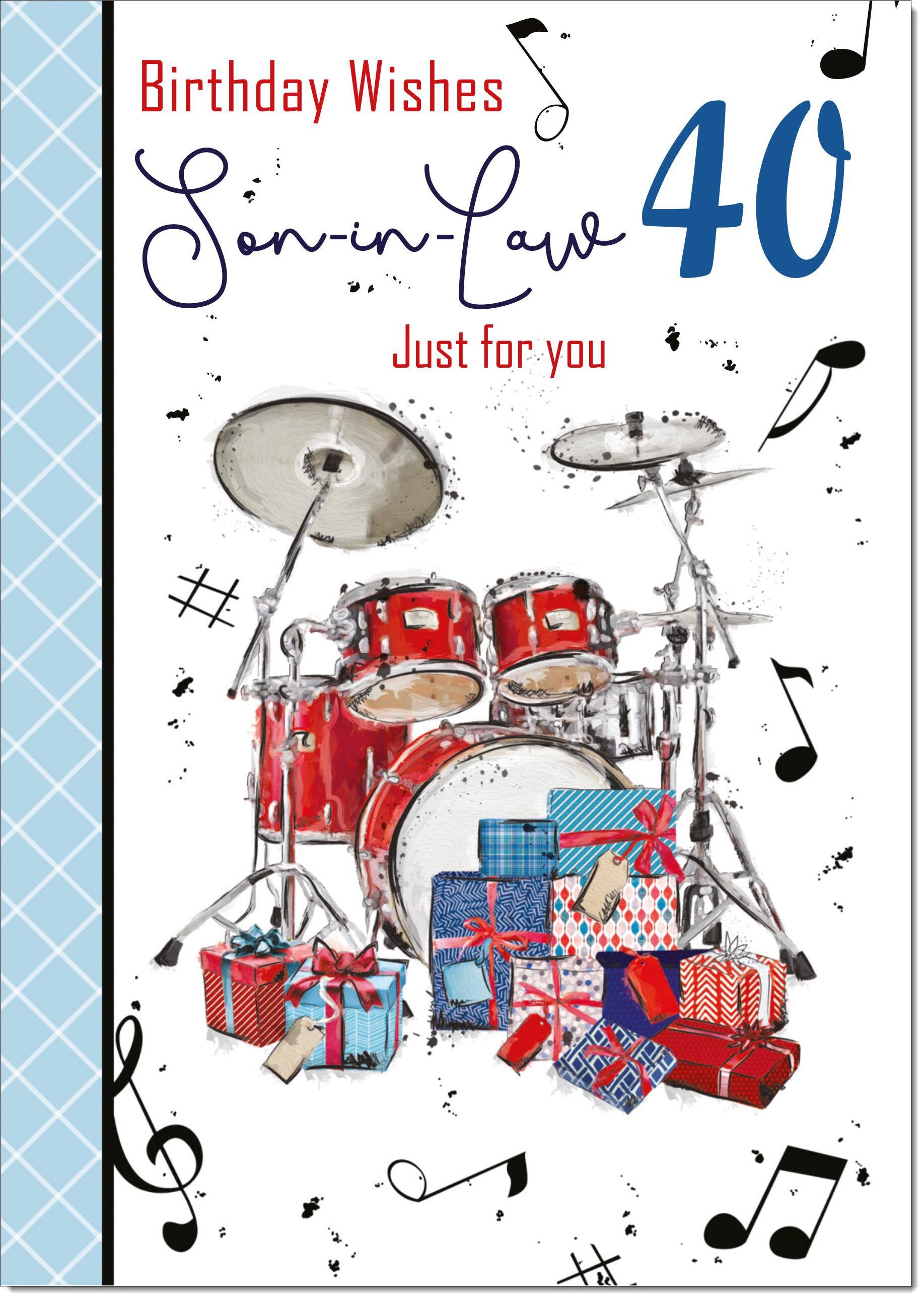Son-in-Law 40th Birthday Card Age 40 Drumkit