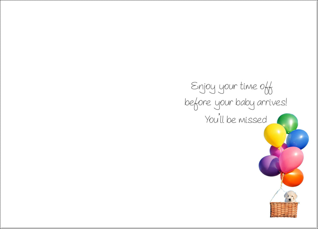 Leaving to have a Baby Card Floating Golden Retriever Puppy