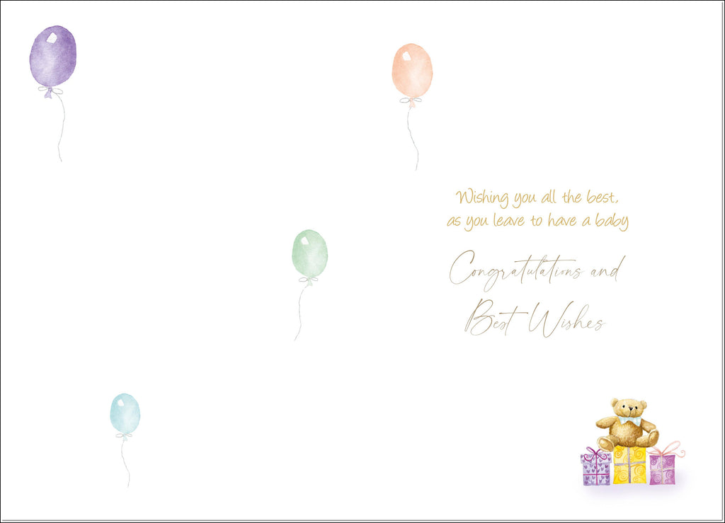 Leaving to have a Baby Card Teddy and Presents