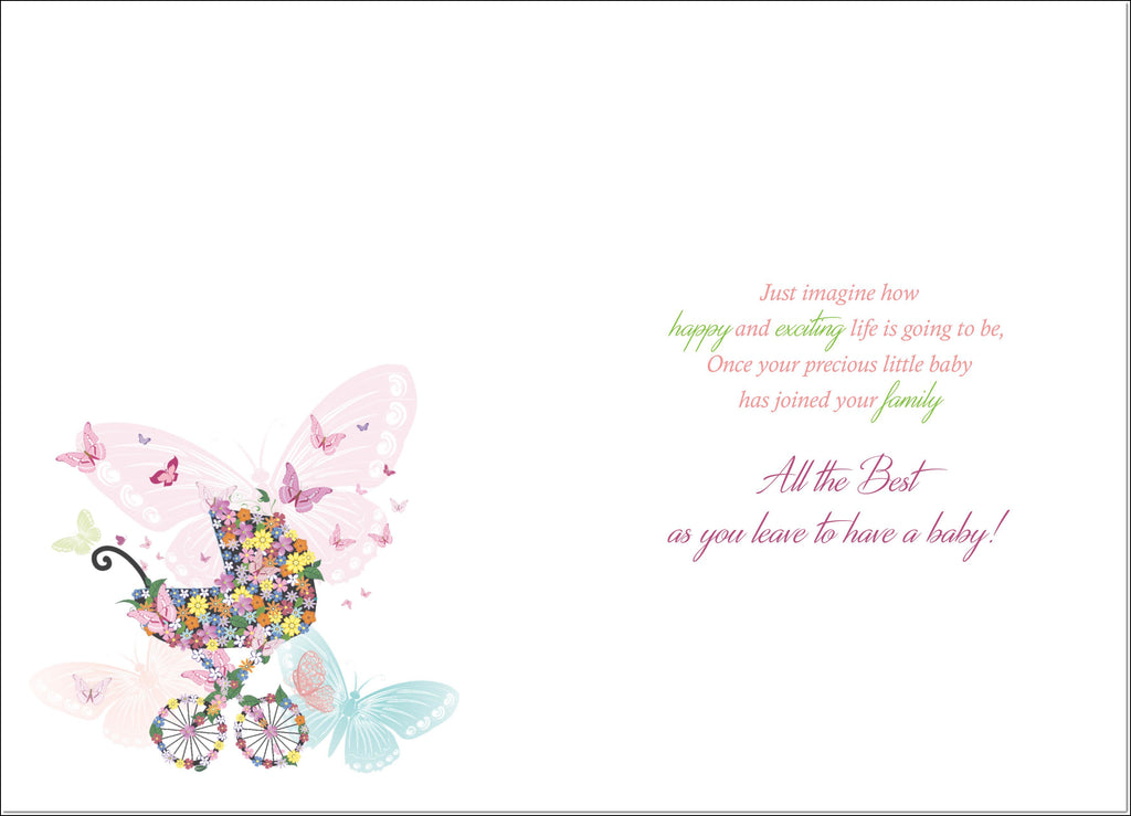 Leaving to have a Baby Card Butterfly Pram