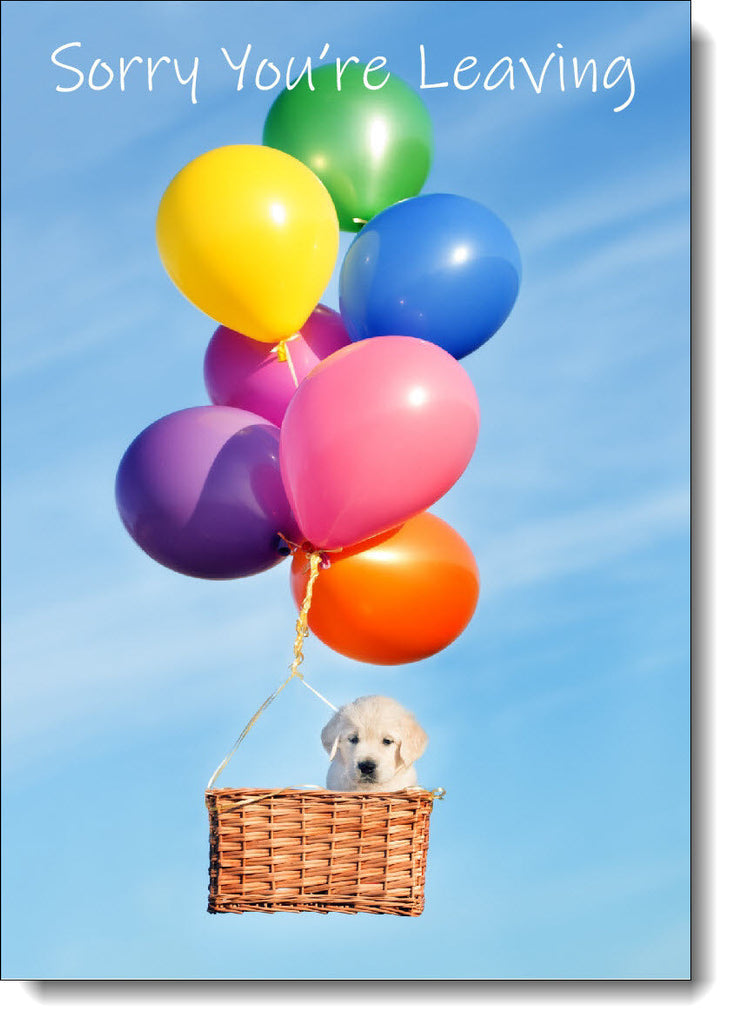 Sorry You're Leaving Card Flying Gold Retriever Puppy