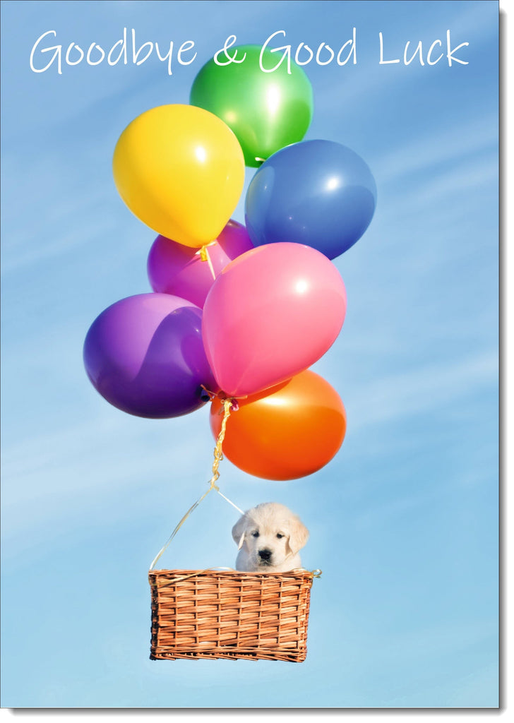 Goodbye & Good Luck Card Flying Gold Retriever Puppy
