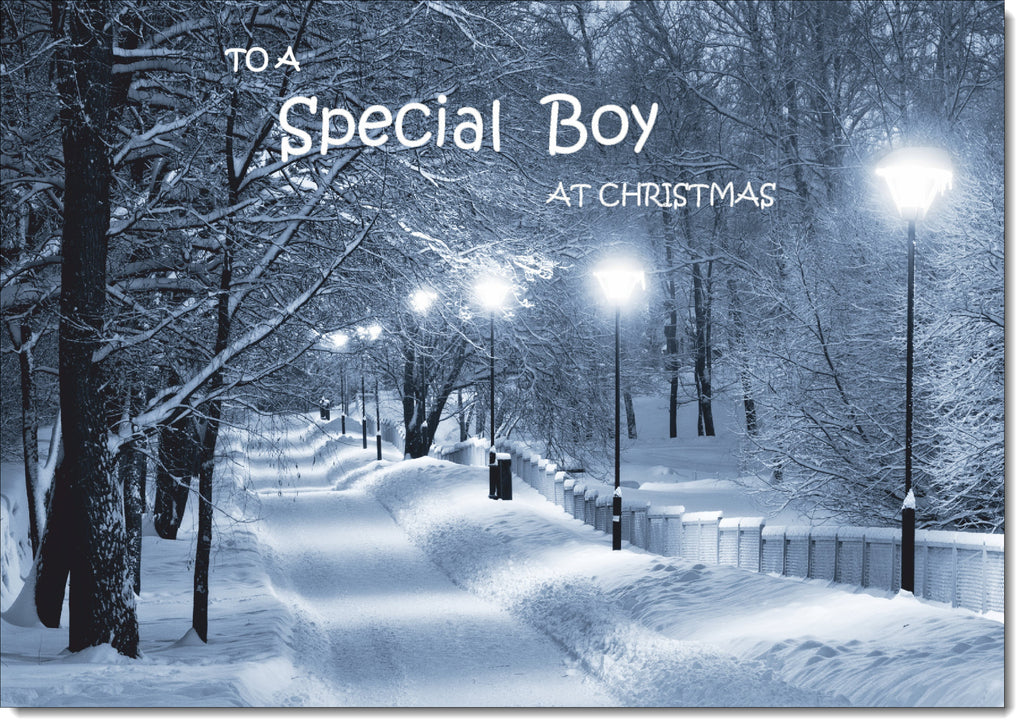 Special Boy Christmas Card Snowy Street Scene