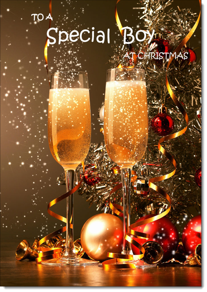 Special Boy Christmas Card Two Champagne Glasses