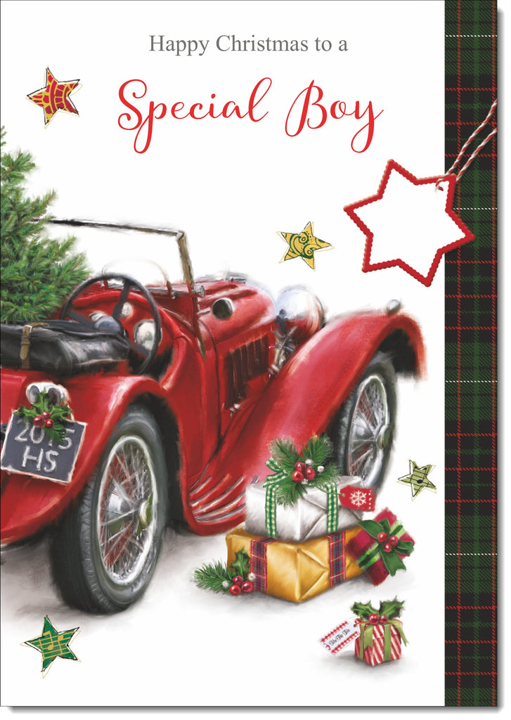 Special Boy Christmas Card Red Vintage Car
