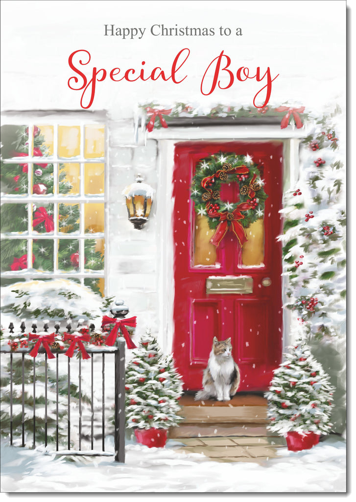 Special Boy Christmas Card Cat by Snowy Red Door