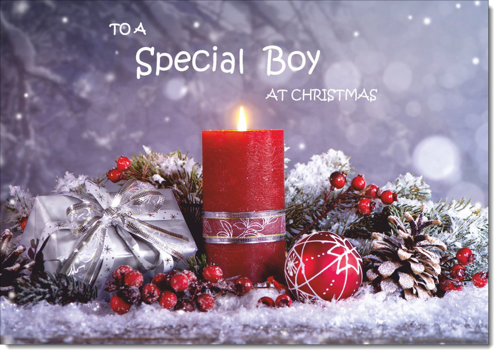Special Boy Christmas Card Red Roses Christmas Arrangement
