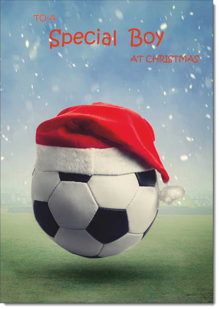 Special Boy Christmas Card Santa Hat Football with Red Sky
