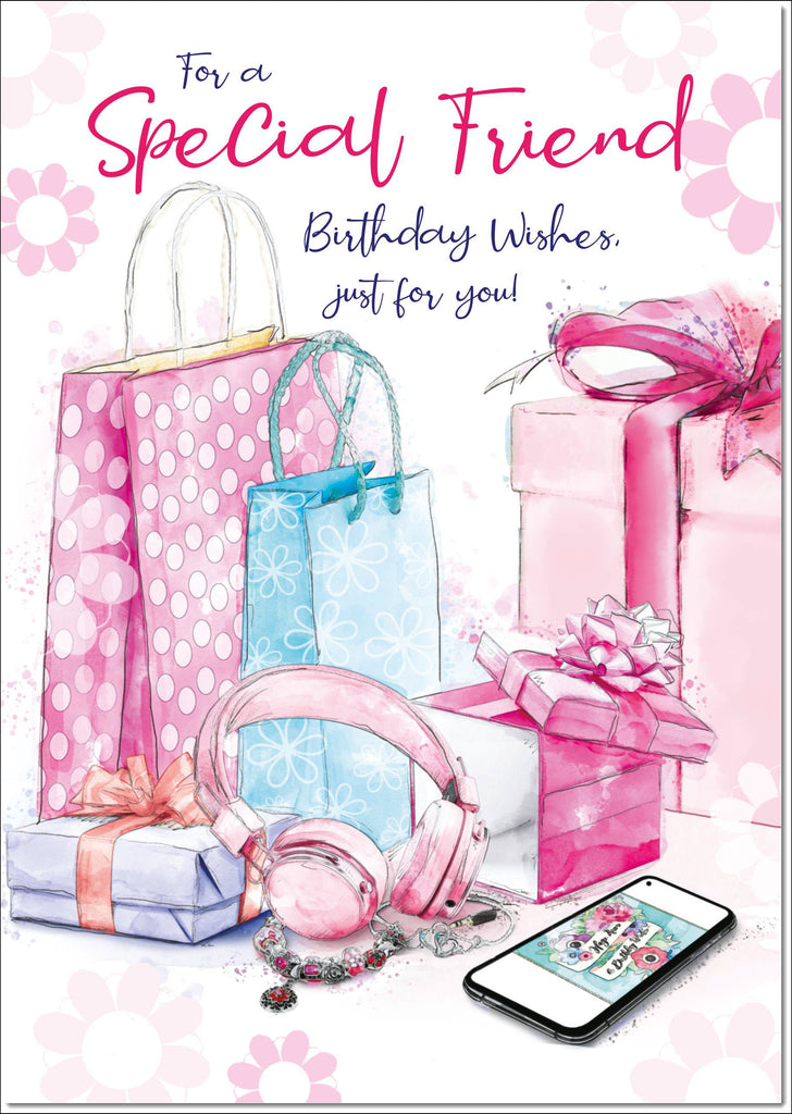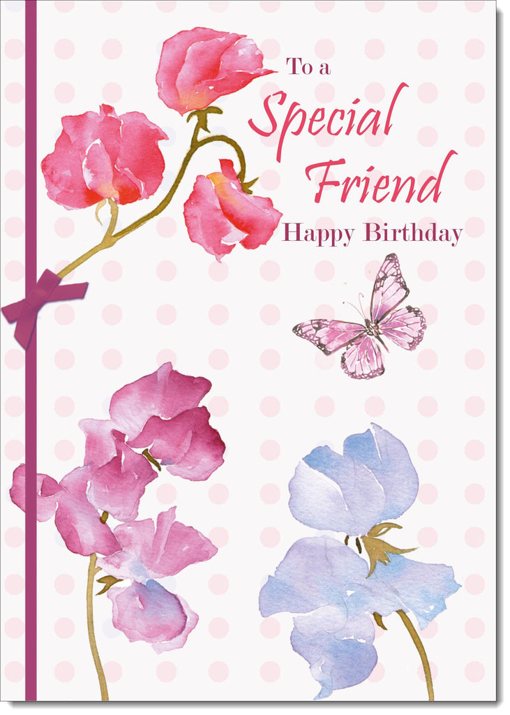 Special Friend Birthday Card Pink Blossom and Butterflies
