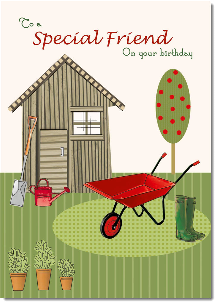 Special Friend Birthday Card Garden Wheelbarrow Bouquet