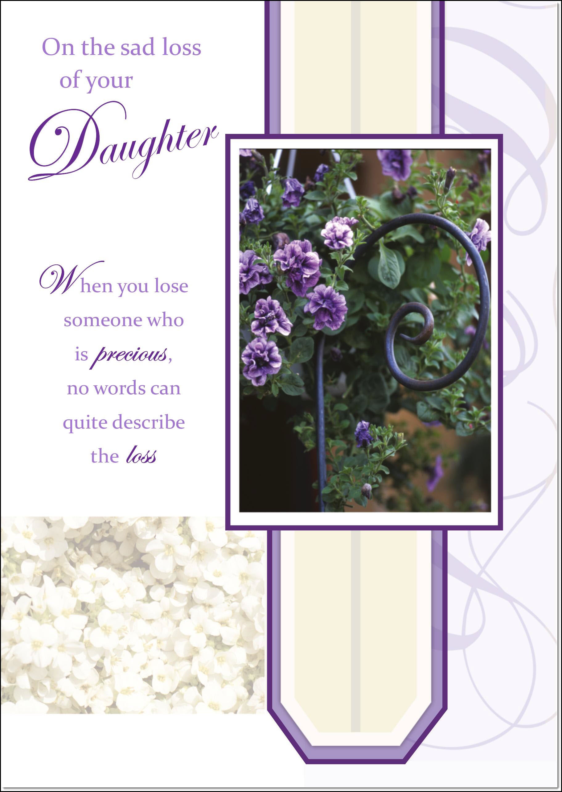 Loss Of Daughter Sympathy Condolence Bereavement Card Purple Flowers