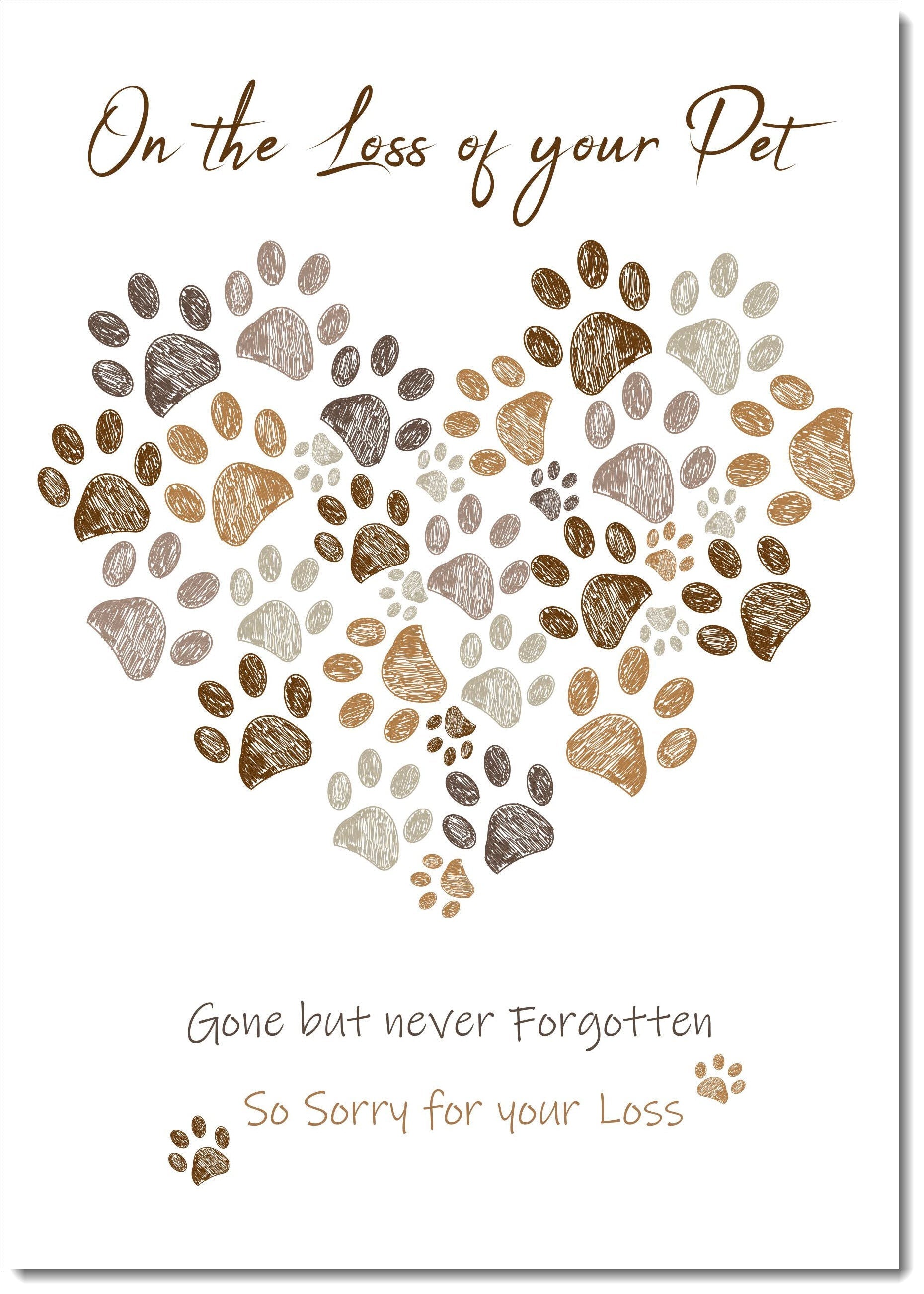 Loss Of Pet Sympathy Condolence Bereavement Card Paw Print Heart