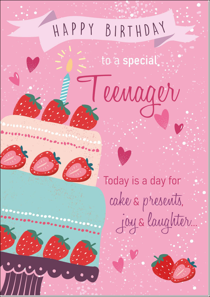 Teenager Birthday Card for Girl Strawberry Cake