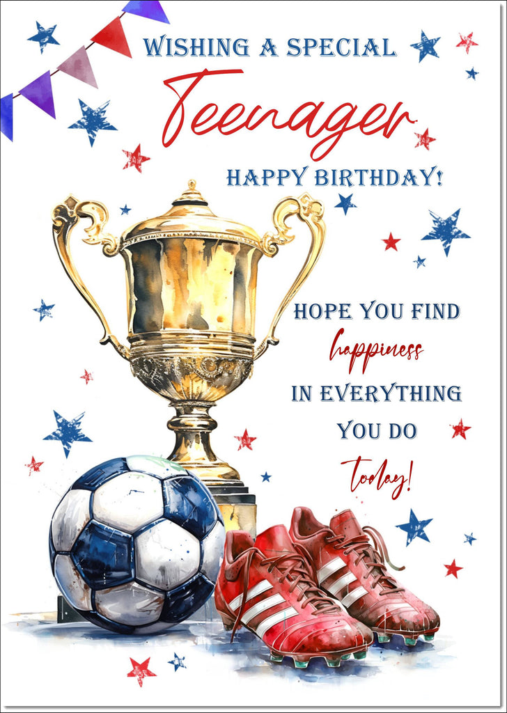 Teenager Birthday Card for Boy for Boys Footballer's Trophy