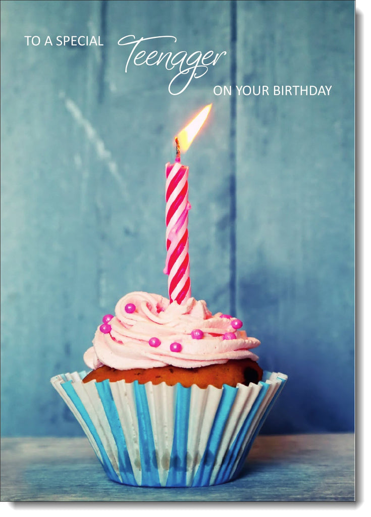 Teenager Birthday Card for Boy Cupcake and Pink Candle
