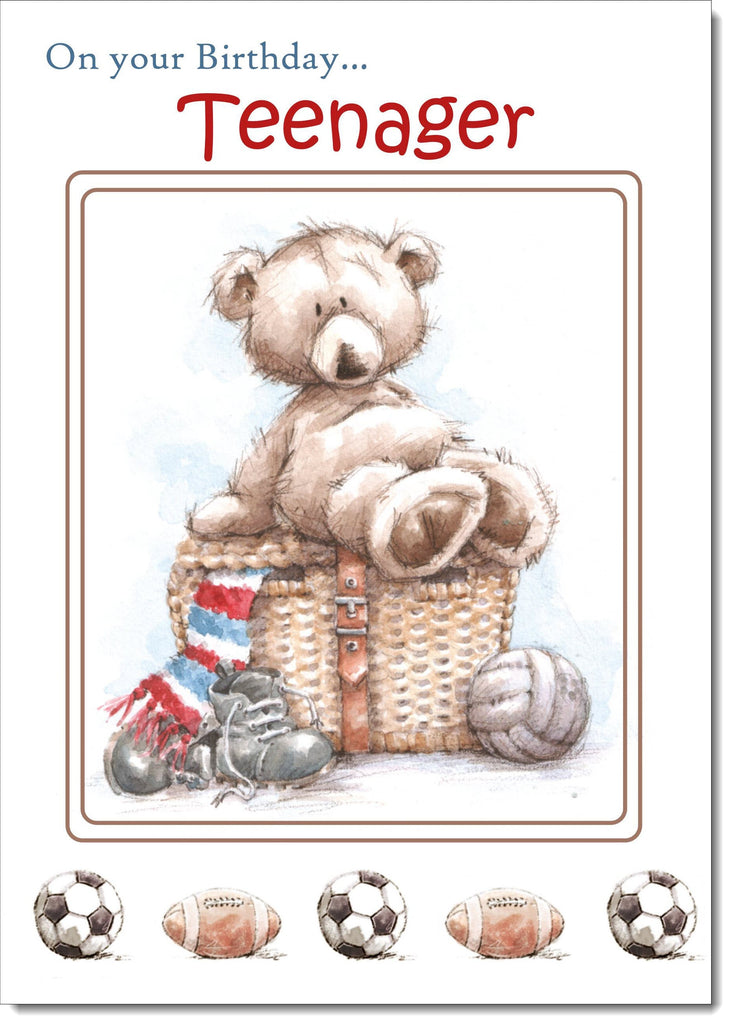 Teenager Birthday Card for Boy Cute Bear Playing