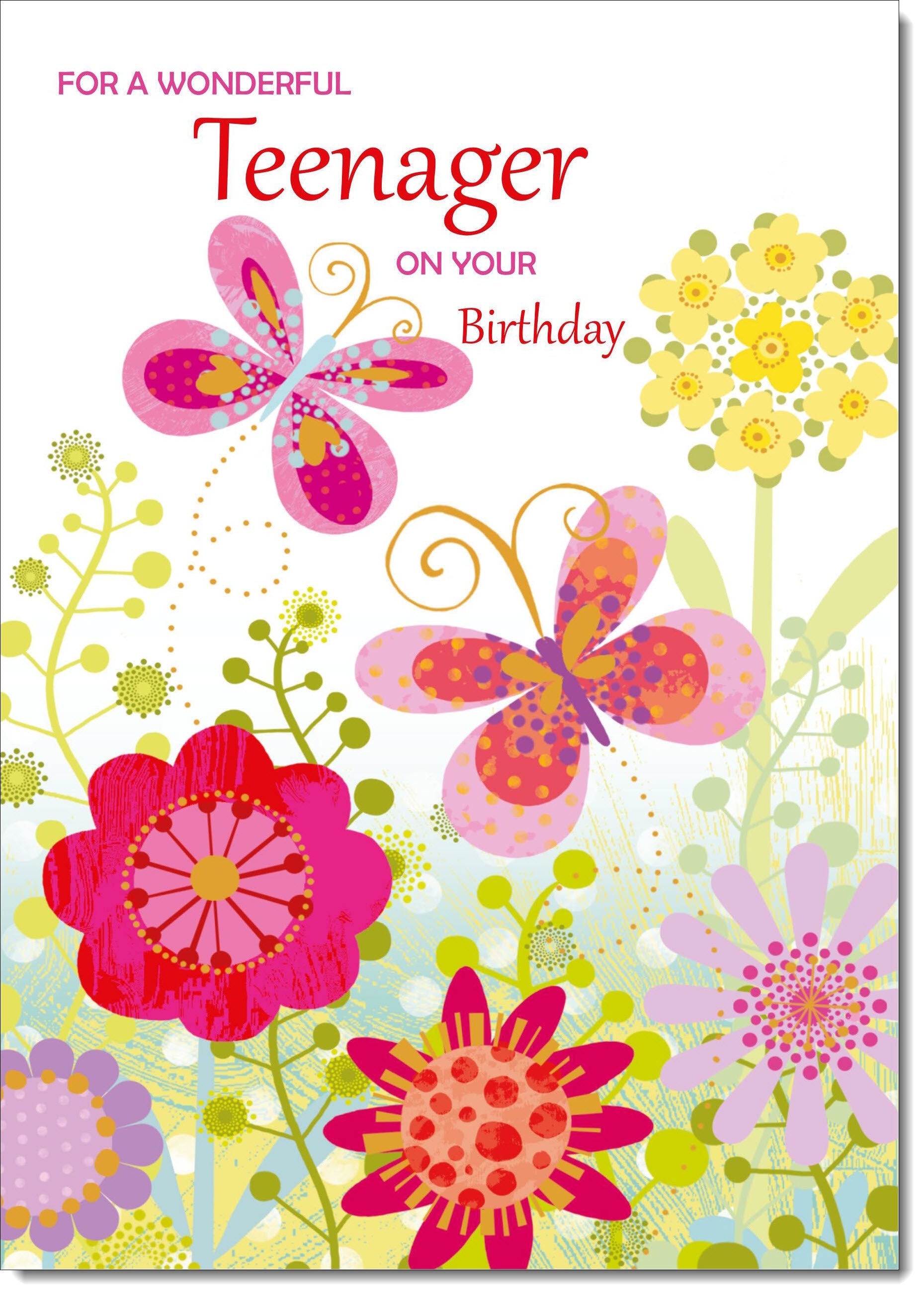 Teenager Birthday Card for Girl Flowers and Butterflies